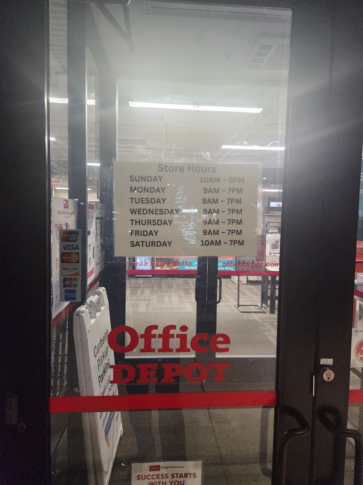 Office Depot is a helpful and friendly store that offers a wide range of supplies and services for both business and home office needs. Customers can now enjoy curbside pickup for online and app orders by parking in designated spots and following simple instructions to receive their orders quickly. The store provides various office essentials, including paper, ink, furniture, technology, cleaning, and breakroom supplies, along with services like custom printing, shipping, and tech support. Staff members are known for their helpfulness, kindness, and professionalism, often going above and beyond to assist customers—whether it’s helping with printing projects or designing custom stamps in minutes. The store’s manager is appreciated for creating a positive atmosphere that makes interactions pleasant. Accessibility features include several handicap parking spaces and a ramp to the entrance, although the doors are not automatic, which can be inconvenient. Inside, the store has wide, clear aisles and a few seating options at display desks. Overall, Office Depot is recognized for its great customer service, quick solutions, and a welcoming environment, making it a reliable destination for office needs.