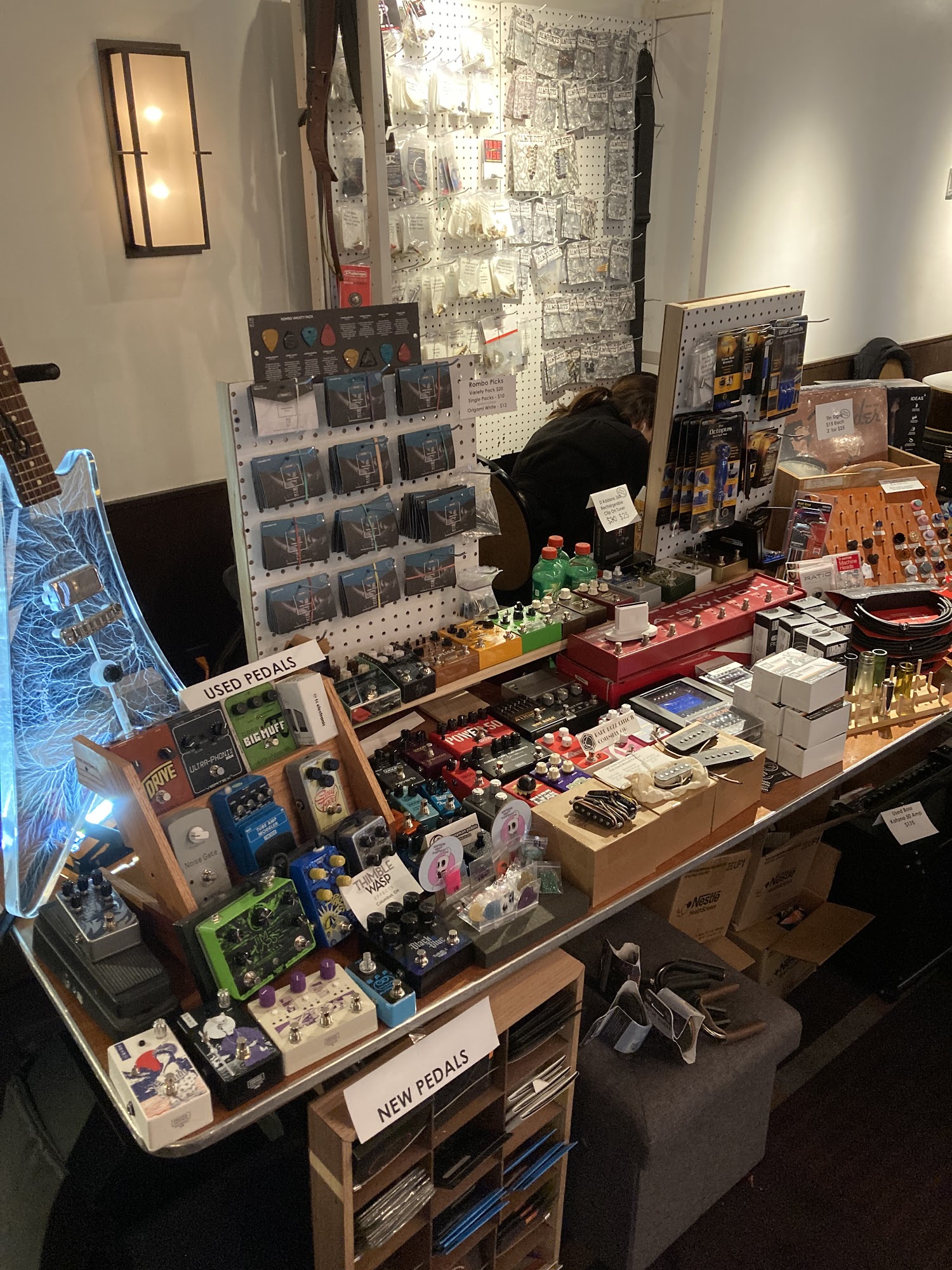 We're a small guitar custom shop. We build a line of guitars, accessories and effects, and will hand make anything in those categories to your specs. As a shop, we focus on a mix of small brands and major manufacturers. You'll discover something new every time you come in. We carry luthier tools and a wide selection of parts for DIY and hobby builders as well. Owner Bryan Peterson has been in the guitar business for more than 20 years in the Chicago area with the two major chains, working with beginners to pros. While a small space, you'll find it a comfortable friendly place to hang out and spend time even if you aren't buying.