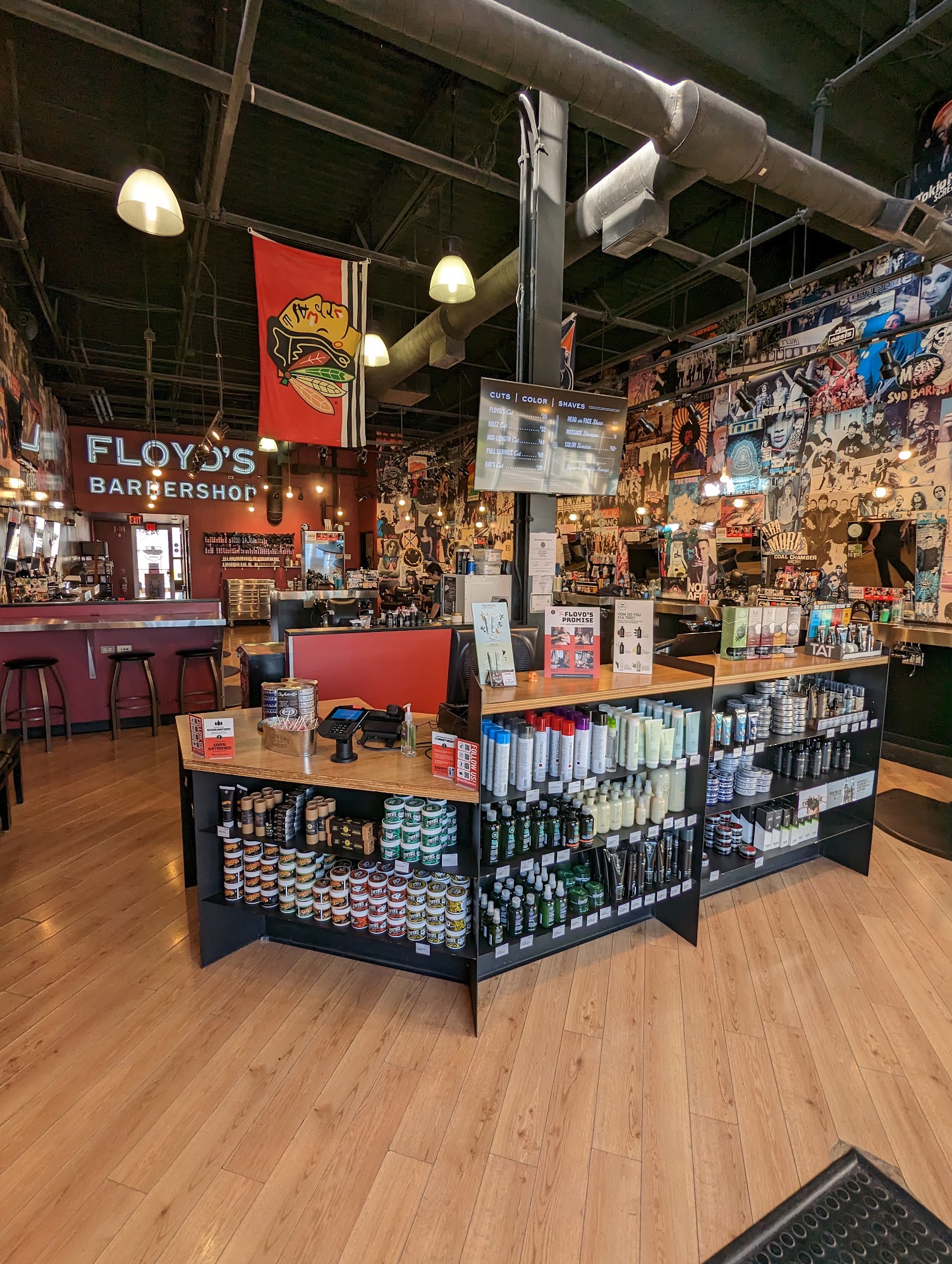 Floyd's 99 Barbershop in Park Ridge, IL offers a wide range of services, including expert haircuts, hair color, beard trims, straight-razor shaves, and signature deep shoulder massages. The shop also carries the Floyd's 99 Grooming line and other professional retail styling products. Customers praise the staff for being attentive, knowledgeable, and entertaining, with skilled stylists like JP and Victoria S. receiving high praise for their meticulous work and ability to deliver incredible results. The shop values customer service, often providing discounts when clients have to wait longer than expected, which many customers appreciate. The atmosphere combines a punk rock vibe with a lively, eclectic décor reminiscent of a garage and venue, creating an energetic environment for grooming. The barbershop emphasizes personalized service, with professionals dedicated to making each client look and feel their best. Overall, Floyd's 99 Barbershop in Park Ridge provides a grooming experience that blends expert cuts, vibrant atmosphere, and a strong commitment to customer satisfaction.