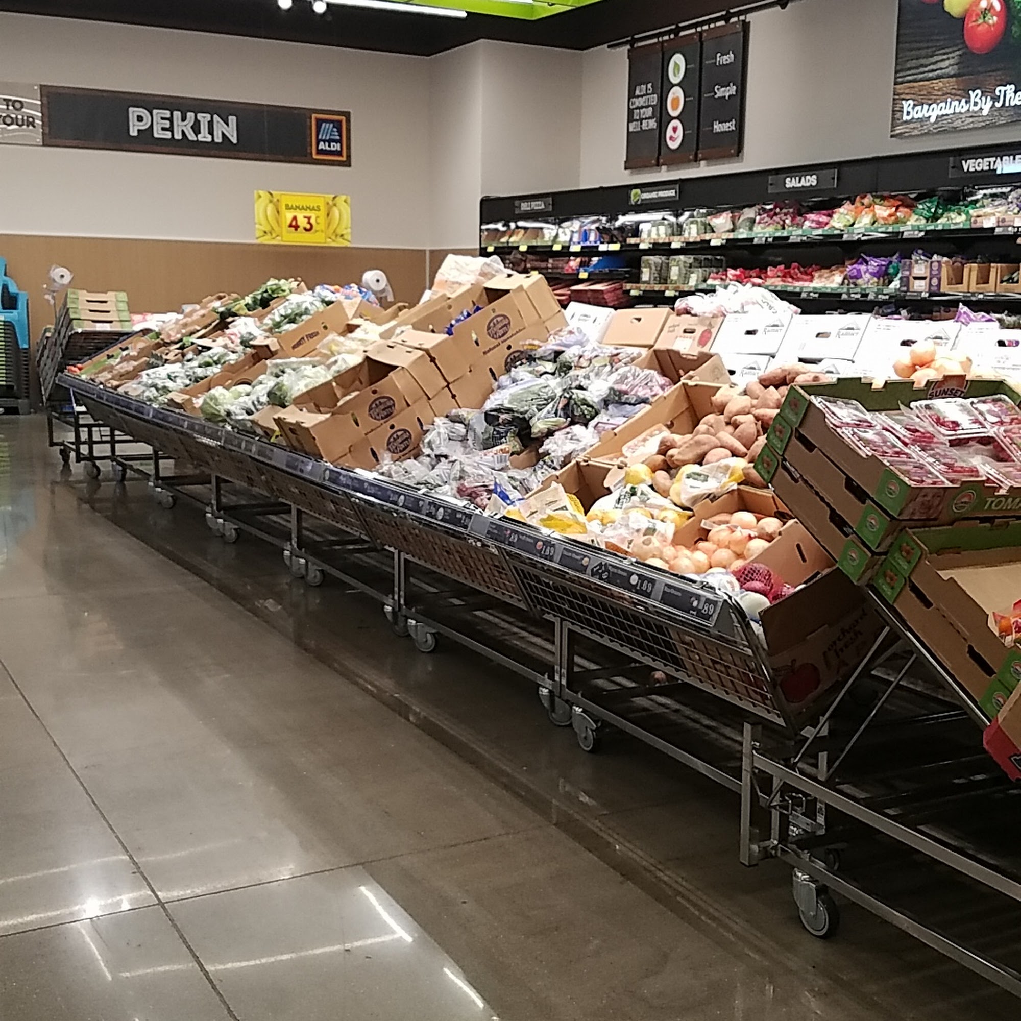 ALDI in Pekin is a store known for offering low prices on a wide range of groceries and home goods. Customers appreciate the availability of fresh produce, meats, organic foods, beverages, and other award-winning items, making it easy to find quality products at affordable prices. The store frequently updates its shelves with new limited-time ALDI Finds each week, providing shoppers with fresh surprises and new items to discover. Many customers highlight the good prices on items like frozen chicken breasts, which are often cheaper than other stores such as Walmart. The store's layout is praised for having wide walkways and good flow, making shopping comfortable and efficient. The store is also kept clean and well-maintained, reflecting the care taken by employees. Visitors who shop here for their jobs also note the friendly staff and the store's overall good product selection. However, some customers have experienced frustrations, such as trouble finding prices for certain items or difficulties purchasing specific products they wanted, like a pair of boot socks. Despite these issues, the overall impression is that ALDI provides quality products at reasonable prices, with a pleasant shopping environment. Customers enjoy visiting the store at 3475 Court Street, especially for the ever-changing selection of affordable and quality items.
