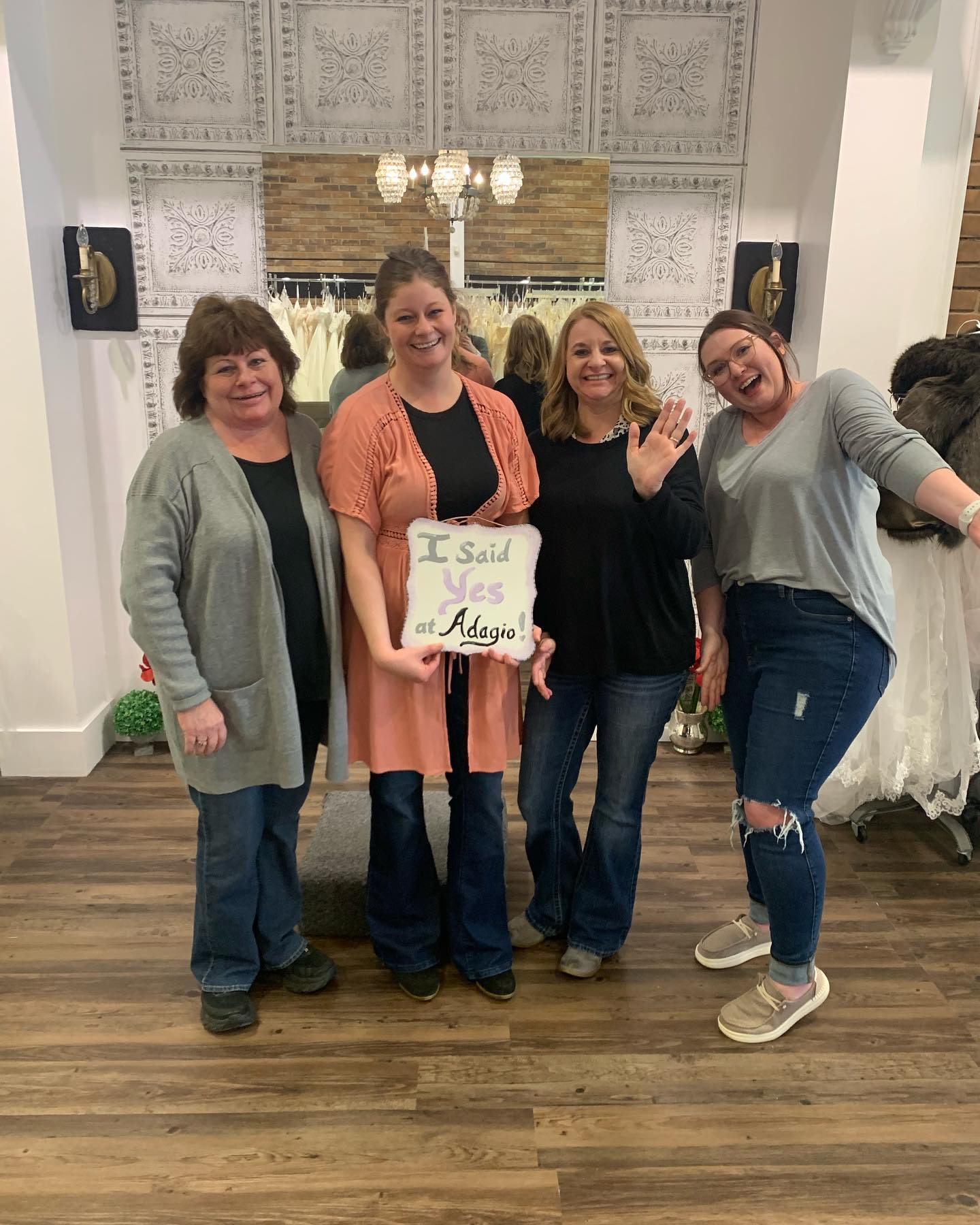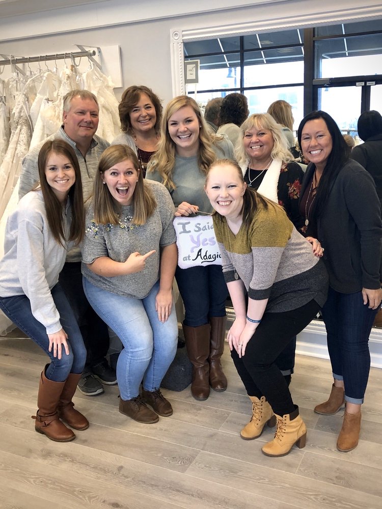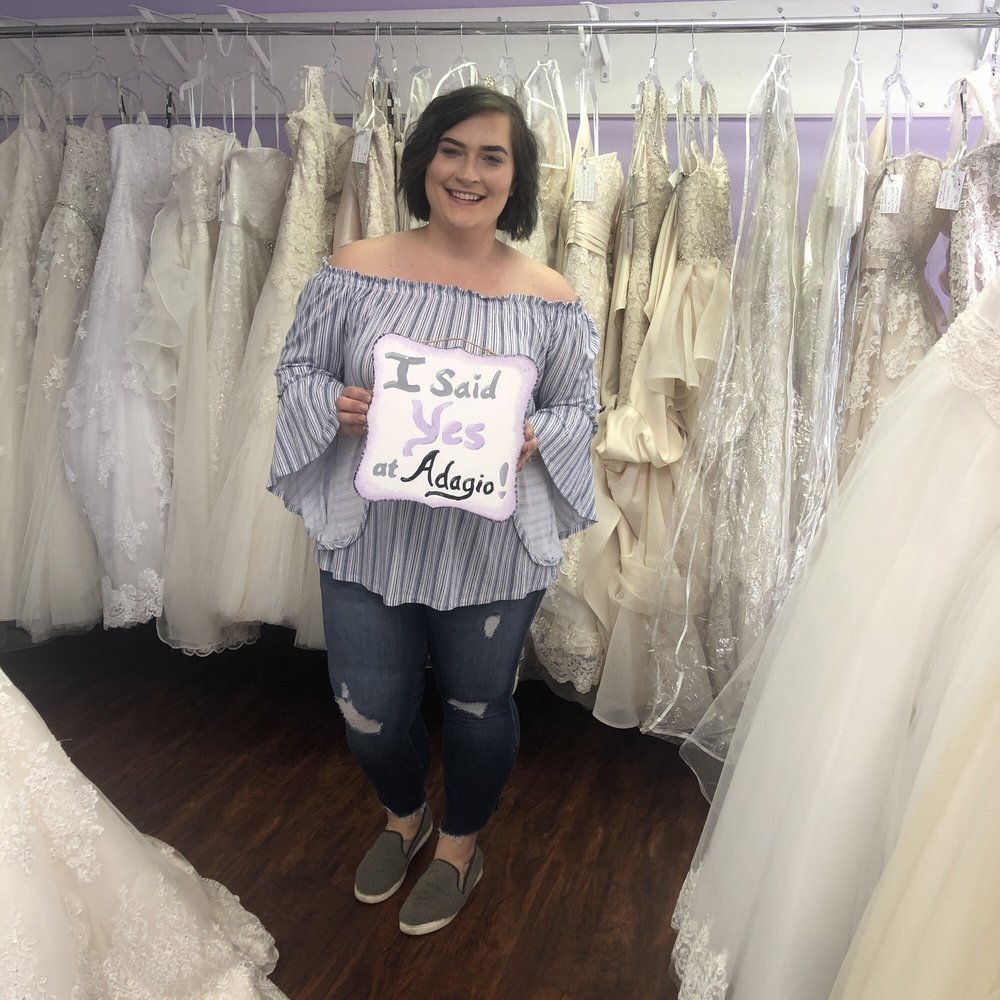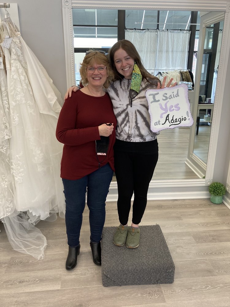Adagio Bridal Boutique is a locally-owned boutique in Peoria, IL that specializes in bridal gowns and accessories. The boutique offers a personalized shopping experience, with private appointments to ensure brides can truly enjoy their dress shopping. Adagio carries a range of bridal gowns, including their own "Ami Holloway Bridal" collection, which are customizable and available in sizes 0-34, priced between $799-$1600. They also offer discounted designer gowns for those with fast-approaching wedding dates. Customers praise the boutique's passionate and helpful staff, who work closely with brides to find their perfect dress. Brides have described the experience as "outstanding," with the staff being "patient," "kind," and "very helpful in determining the best style." The boutique's custom designs and affordable prices have also been highlighted as key strengths. Due to COVID-19, Adagio Bridal Boutique operates by appointment only, with all appointments scheduled at least 24 hours in advance to allow for proper sanitizing and private appointment scheduling. The boutique is excited to safely serve brides and help them feel like the "princess" they deserve to be on their special day.