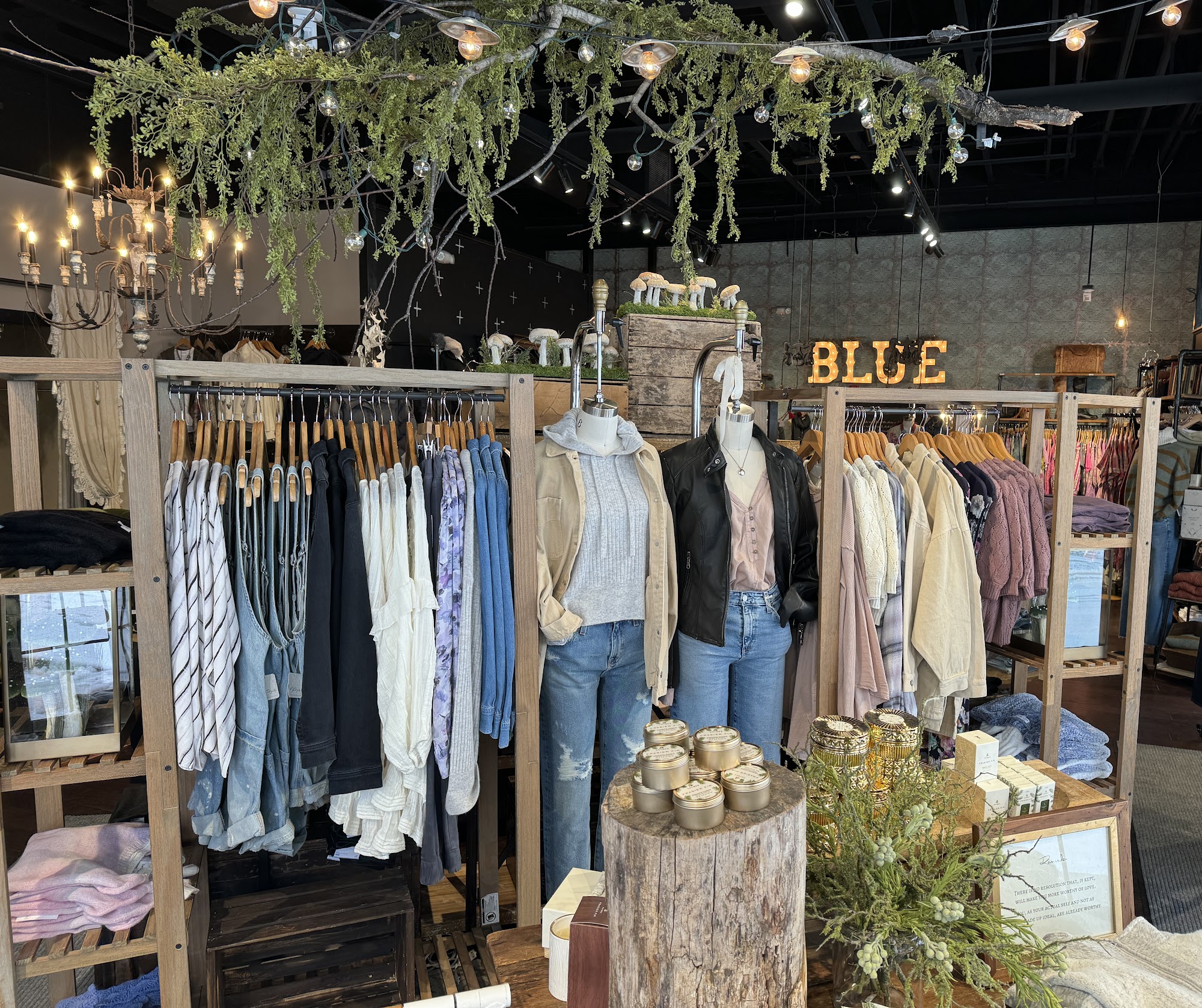Located in Peoria, Illinois, Blue is a boho chic + athleisure lifestyle boutique. Vuori, Free People, Faherty, Patagonia, Johnny Was, Rails, Birkenstock, Bed Stu, Frye, Gola, Prana, Lole, Bella Dahl, Carve, Wooden Ships, Toad and Co, AG and more plus giftware from Capri Blue candles, Thymes, Jelly Cat and Natural Life.