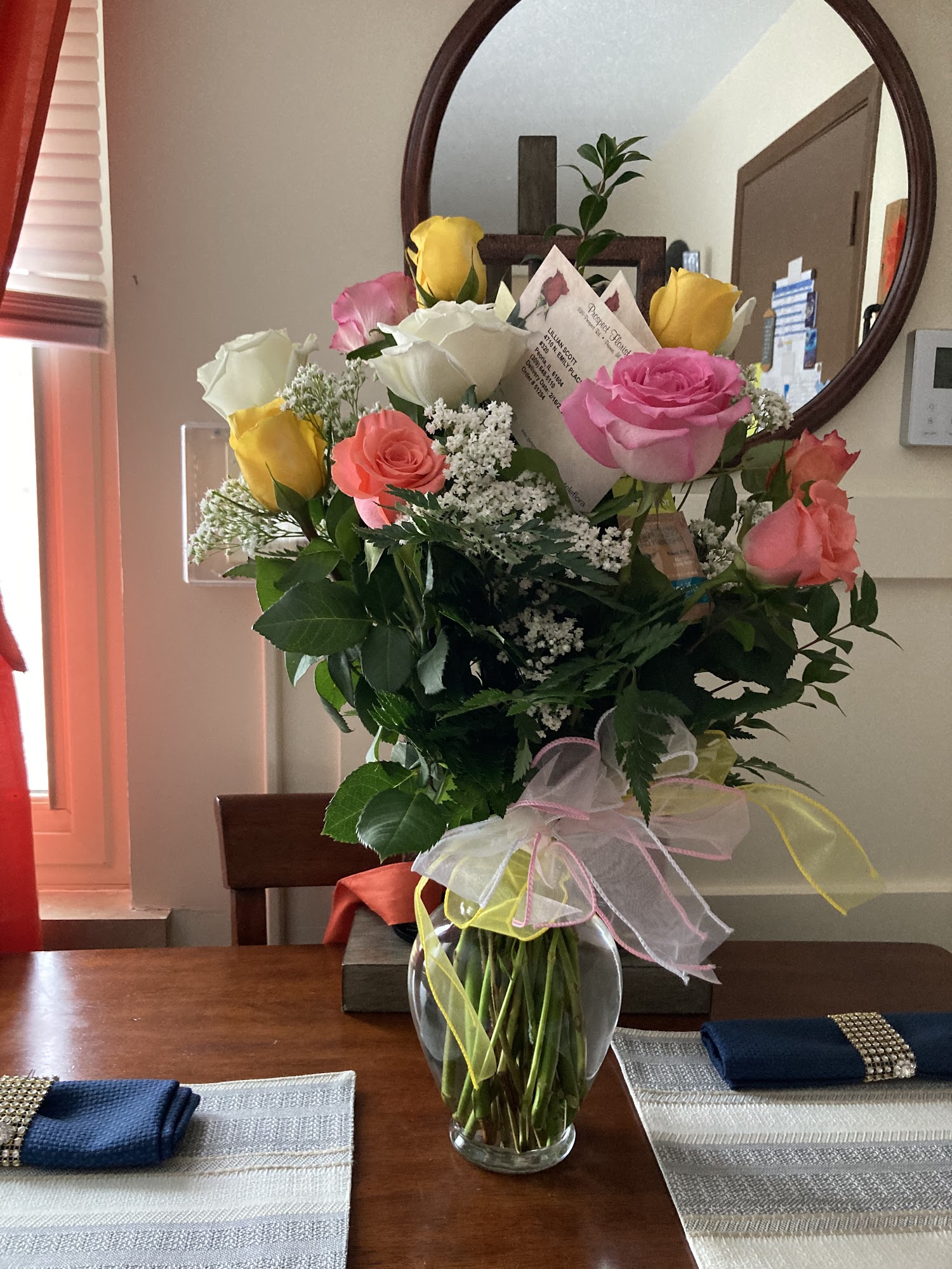 Beautiful arrangement and reliable delivery, as usual. I highly recommend this florist. Great service!