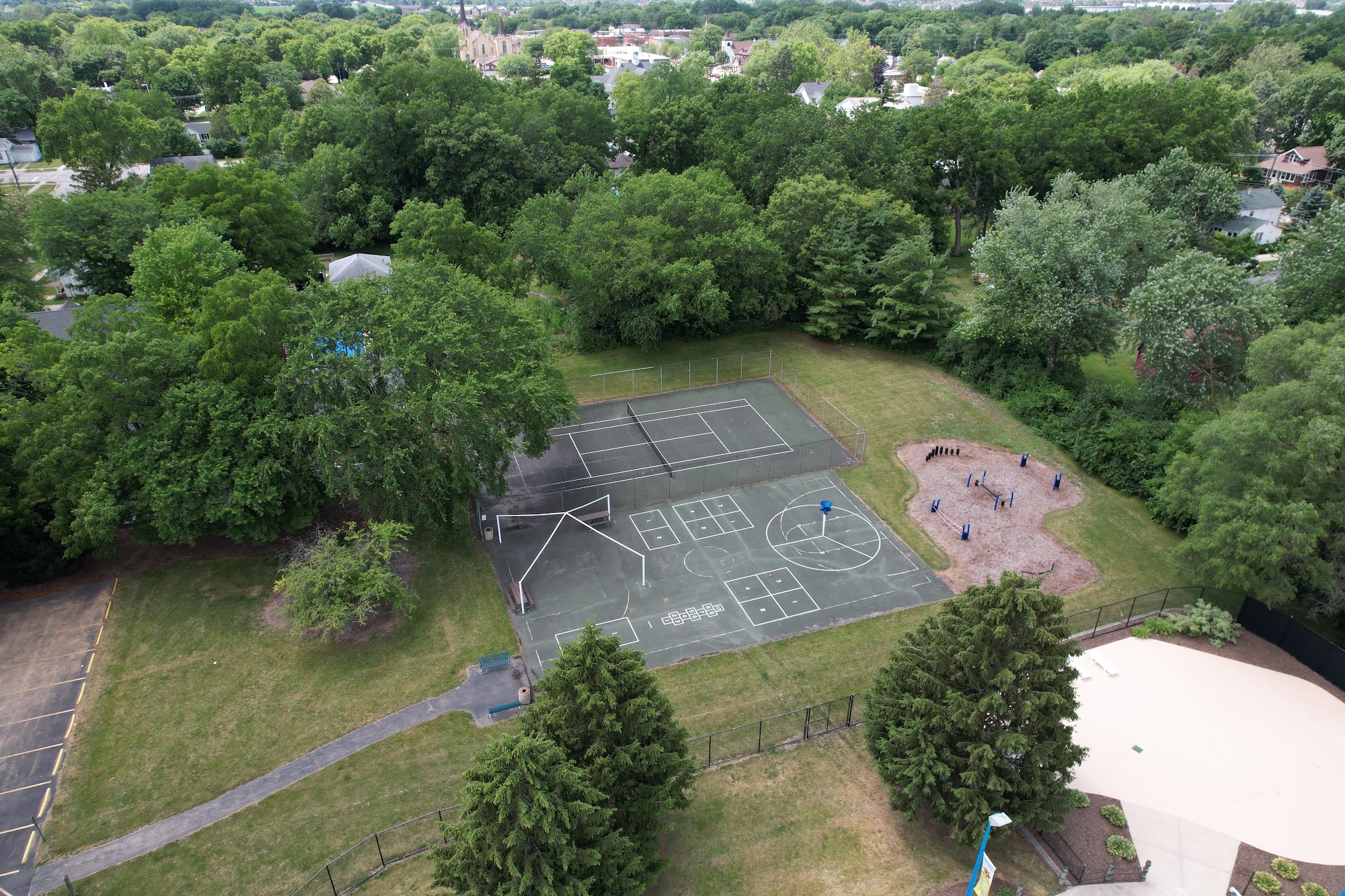 We love this park to burn off energy during the warmer weather also it's a great sledding hill.The playground I would say is geared more for toddlers and there is also a large field for running but also sledding in the winter time.