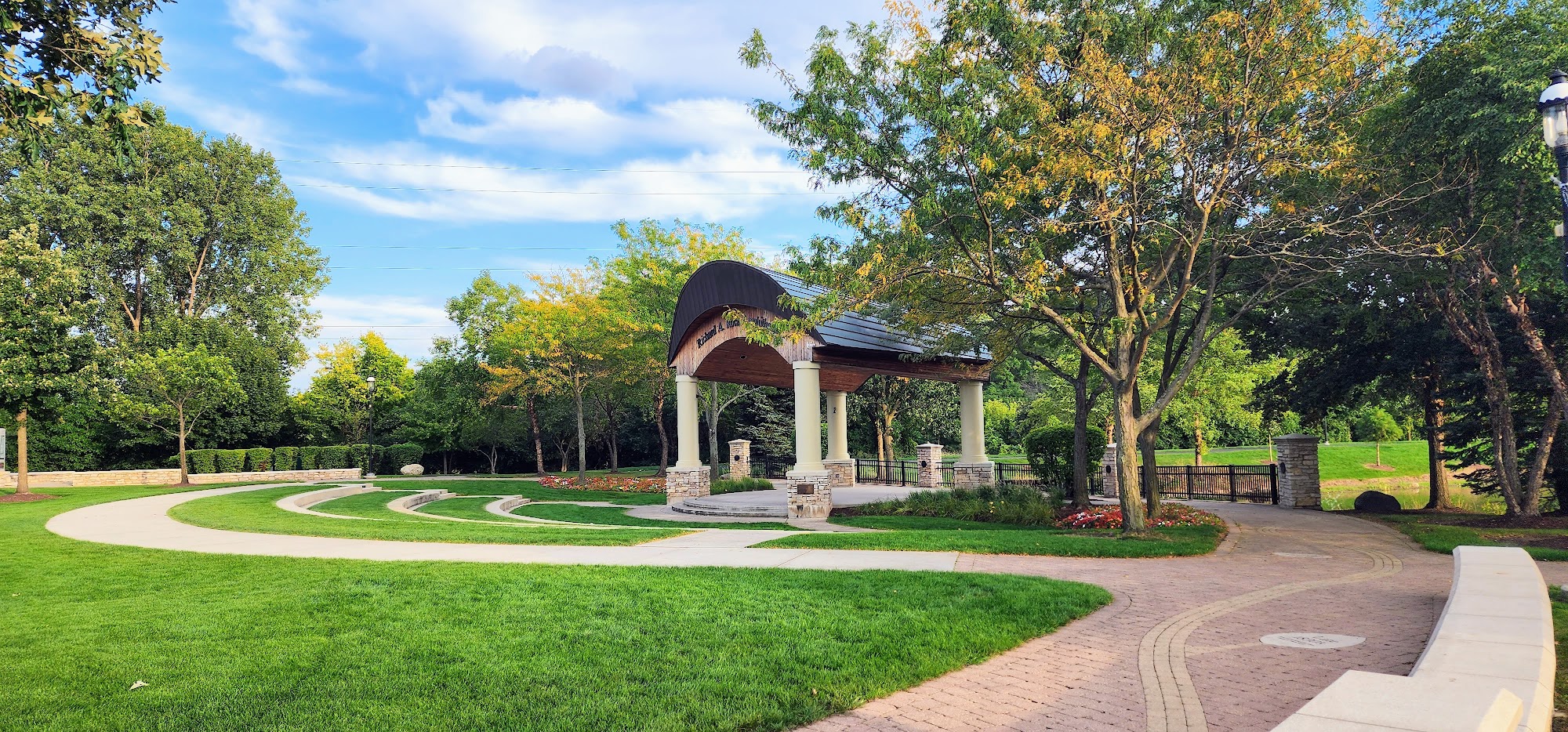 This is a beautiful place to take a walk, jog, or bike. Paved paths with a bridge, statues, displays, and plenty of open space. The paved trail connects to Mather Woods, which is also an amazing park, if you want to extend your mileage.