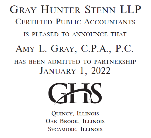 Gray Hunter Stenn LLP is the oldest and largest accounting firm in Quincy, IL. The firm was established in 1917 and is a member of the AICPA G400. Services offered by Gray Hunter Stenn include tax preparation, auditing, consultation, benefit plans for employees, payroll, & bookkeeping.