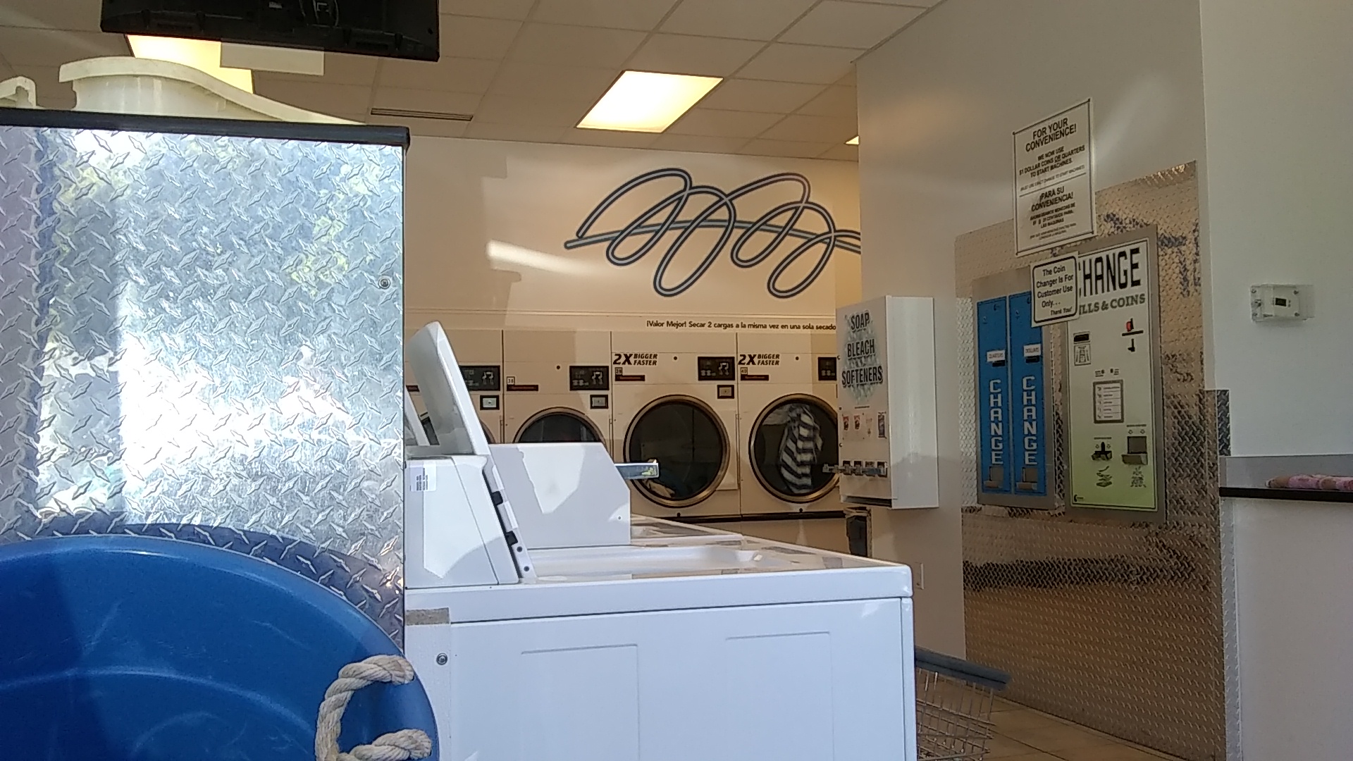 A good wash in 35 mins for two loads in separate washers, the dryers were a perfect size for all loads plus+! I liked the way the change dispenser's worked and the amounts they exchange. I do feel that there should be more carts to change clothes from washer's to the dryer's!