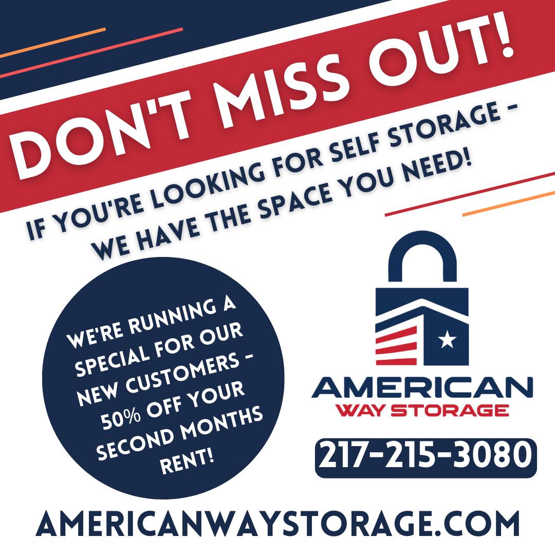 American Way Storage is a locally owned and managed self-storage facility in Robinson, IL. The facility is Veteran-owned and operated, providing a variety of storage unit sizes to meet all customers' needs. The process of obtaining a storage unit is described as easy, with the ability to rent and pay online in just minutes. Customers appreciate the facility's features, including bright LED exterior lighting, security cameras, exclusive drive-thru driveways, and 24/7 access. The staff is commended for their responsiveness and for making customers feel valued. The storage facility is praised for being well-lit, clean, and conveniently located, offering a fair price for the spacious units. Overall, American Way Storage is highly recommended for its efficient and customer-friendly service.
