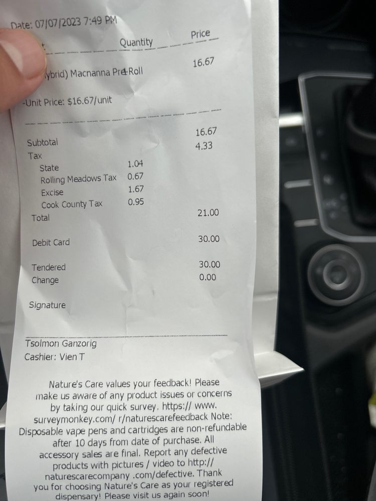 Nature's Care is a medical and recreational cannabis dispensary in the Northwest Suburbs of Chicago. It is noted as one of the best in the local area and a fantastic go-to spot. The staff is consistently described as super helpful, kind, pleasant, friendly, welcoming, fast, and informative, providing outstanding customer service and making the process smooth. The dispensary offers a great selection with an affordably priced and diverse product menu, including awesome specials and favorite brands. The in-store kiosk for online ordering is really easy to use. While parking can be tricky during bad weather, there are several accessible spots. Customers frequently state they will definitely be returning.