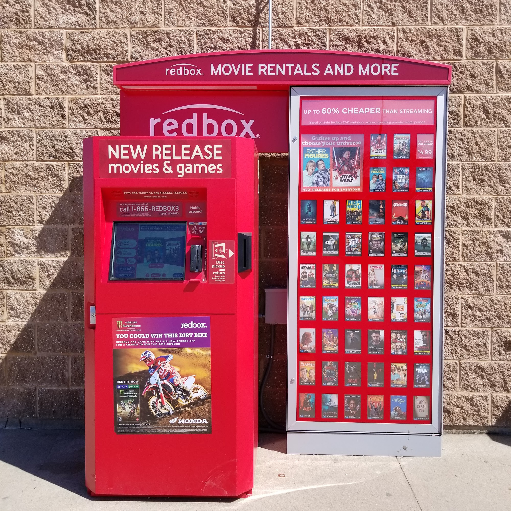 Convenient 24 hour location to rent DVD'S, Blue Ray discs, and Games. Located just outside the front entrance of Dollar General.