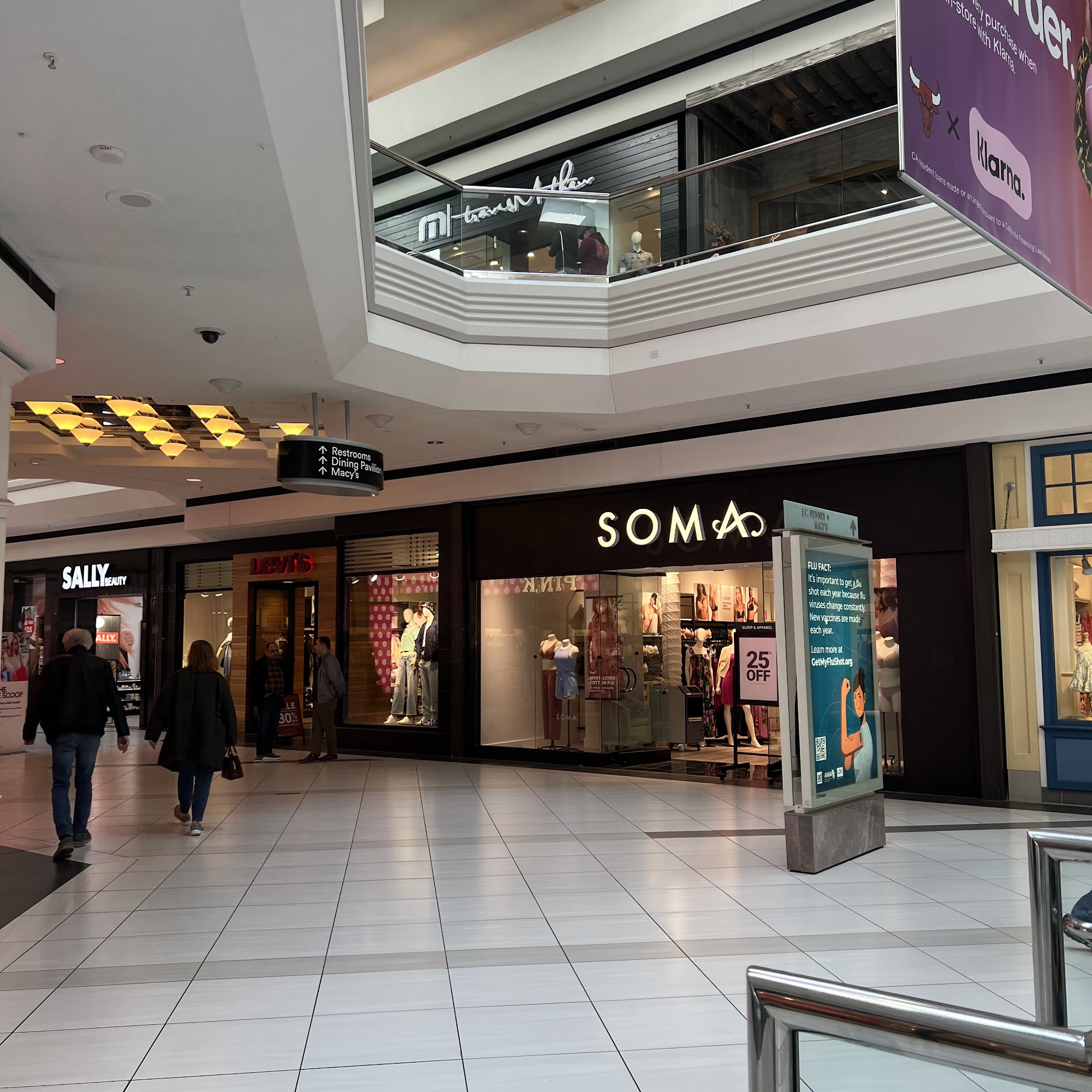 SOMA is an intimate apparel boutique located on the 1st floor of Woodfield Mall, past Nordstrom. The store offers high-quality lingerie and bras that last longer than many other brands. Customers appreciate the friendly and attentive staff, with one employee helping find the perfect size and fitting, making the shopping experience pleasant and easy. The store features a wide variety of lingerie to meet different needs, and often runs sales such as 25% off and rewards programs offering discounts. While most staff are friendly, there was an instance where a staff member's attitude made a customer and her partner uncomfortable. Overall, shoppers find SOMA to be a nice, intimate store with good products and helpful service, encouraging them to return.