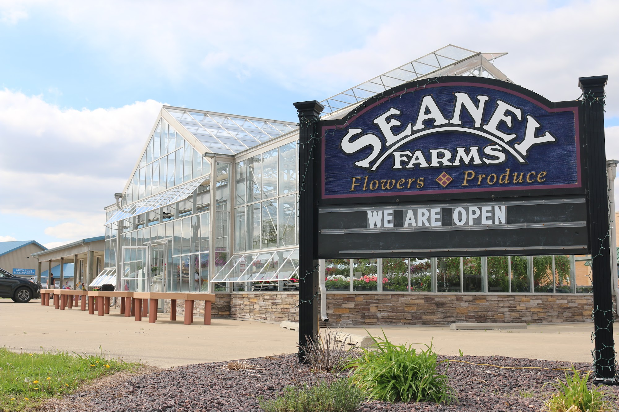 Seaney Farms is a locally owned produce and greenhouse store. All of our flowers and plants are grown locally in a 35,000 square foot greenhouse equipped with the latest growing technology to ensure the best quality plants. We have a wide variety of annual and perennial flowers as well and different herbs and vegetables. Our produce market includes different varieties of fruits and vegetables, including our famous home grown sweet corn.