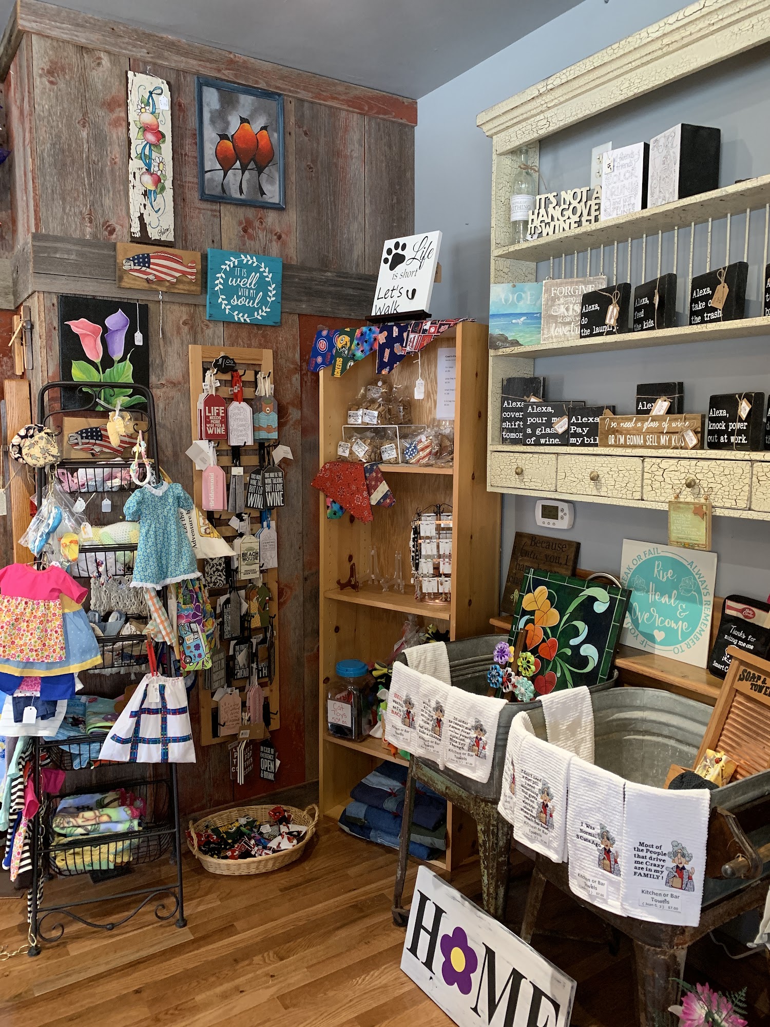 This darling little shop is a gem! There are so many wonderful items to see! Prices are very reasonable and the shop owners are personable and charming! This is a must go-to for every holiday and season as their stock is always changing and updated!