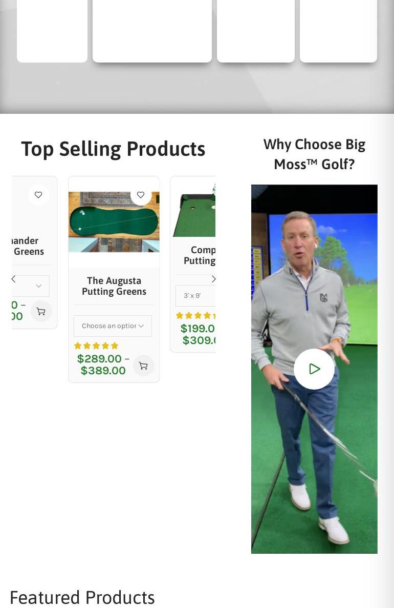 Big Moss Golf is not only an excellent, well run company, they make exceptional products. Very happy with their service and high quality golf gear. Their putting mats are the very best for the money. Get off of Amazon and buy direct.