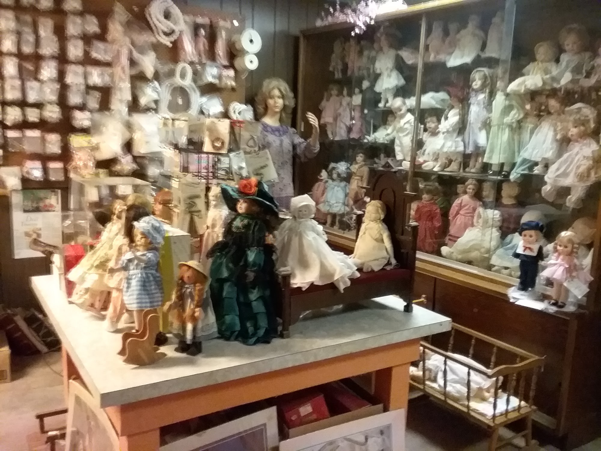 Established in 1980. Specializing in repairs and restoration for all kinds of dolls - especially old ones! I also sell all supplies required for making your very own doll. We carry a large selection of clothes, accessories, wigs, shoes, socks, eyes, glasses, hats, tea sets, jewelry, patterns books, etc. For doll houses, we carry miniature furniture, wallpaper, paint, lumber, hardware, electric lights, rooms full of accessories, and people & pets. We have new dolls for sale including Madame Alexander, Effanbee, World Dolls, Heidi Ott, Faith Wick, and many Porcelain handmade dolls. Kristin has over 40 years experience in doll-making and restoration. She provides free estimates and guaranteed work. Call today for an appointment!