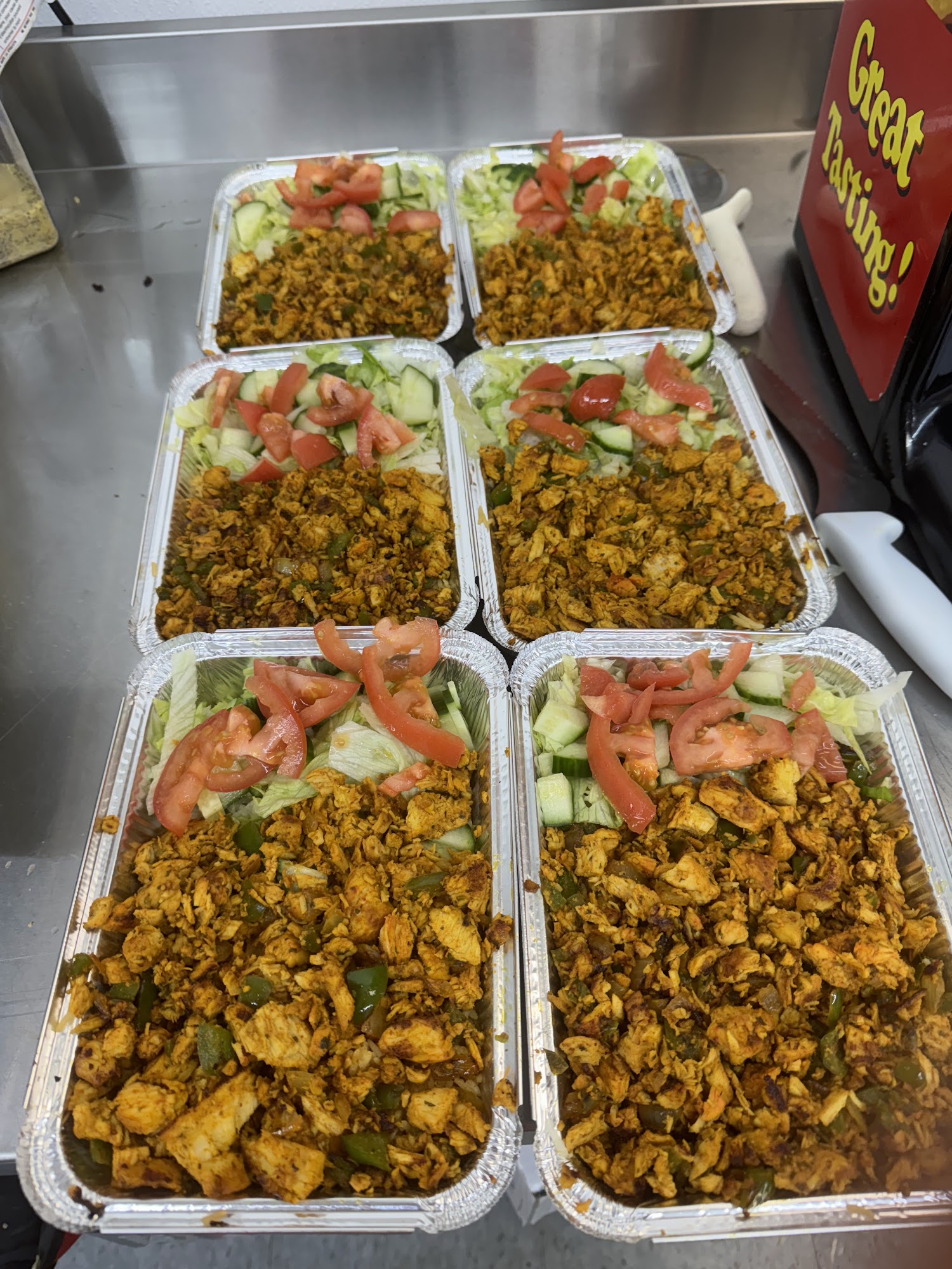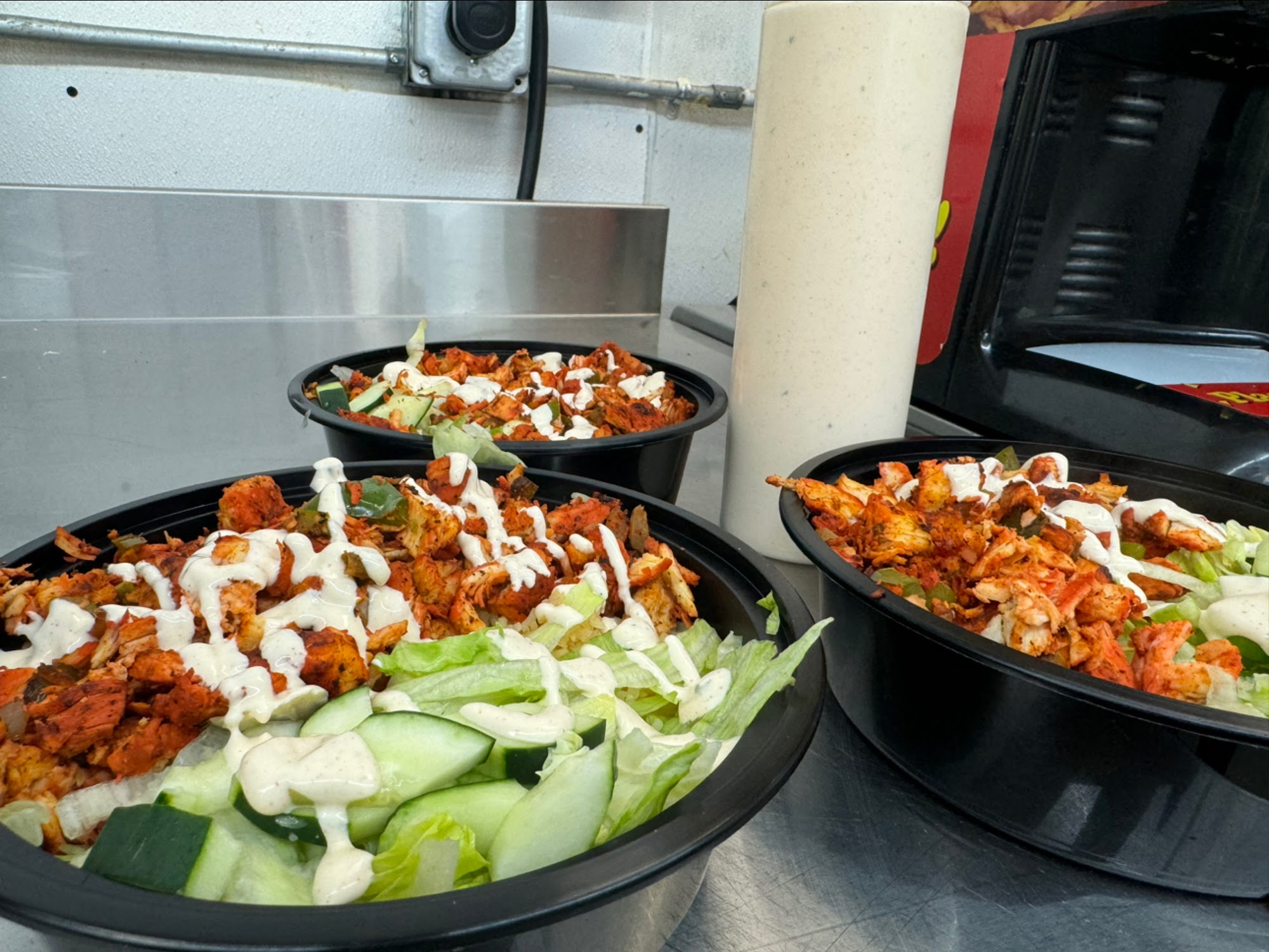 They New York halaha bowls (I know I spelled that wrong lol)are fire I get the chicken with extra chicken extra sauce you can’t go wrong it is filled to the brim this is my go- to spot when I’m home and guys in there are super cool