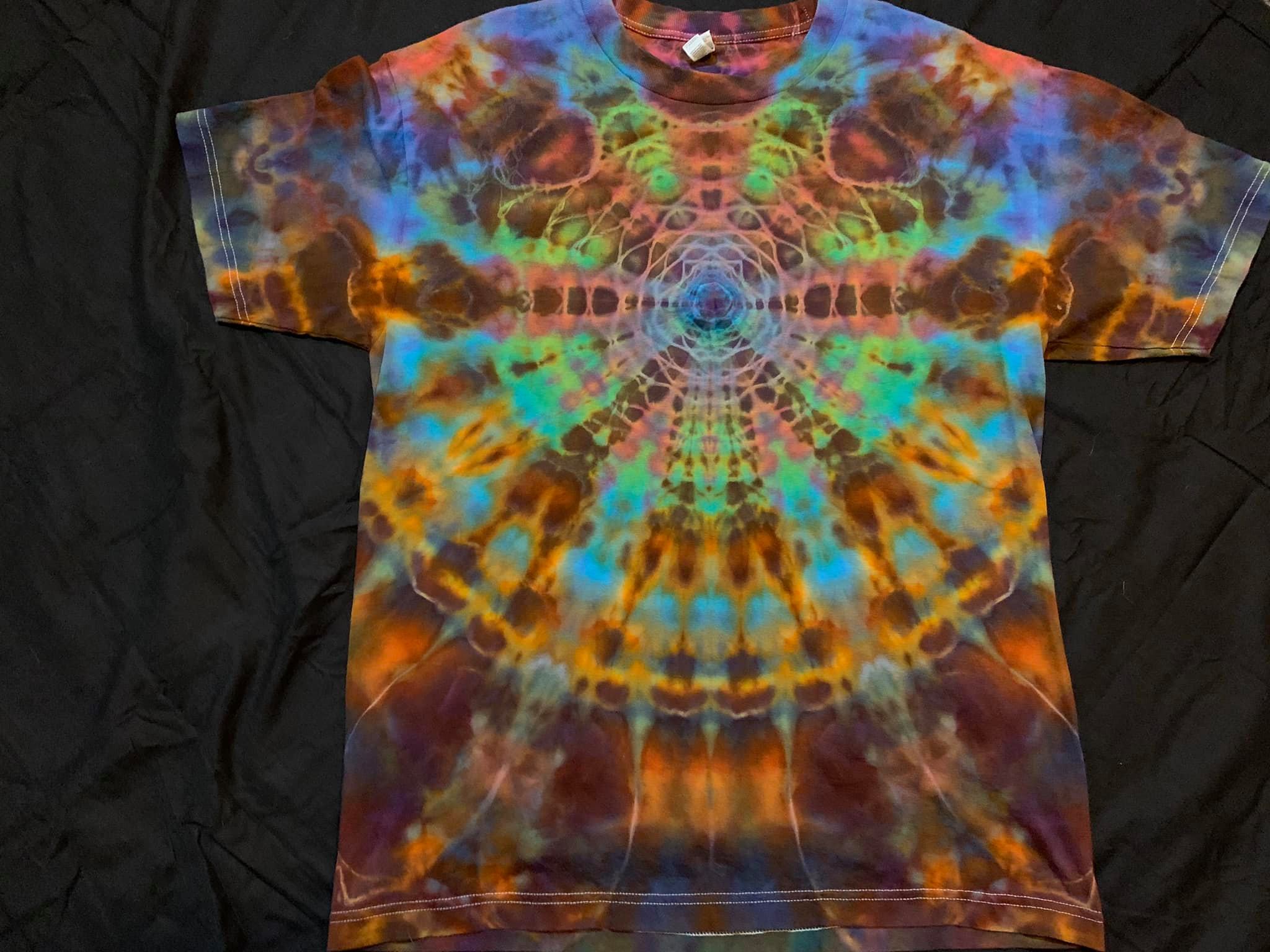 so far bought two of his art work and they are absolutely stunning the quality of the shirts are great also!! I love the uniqueness of his dyes! very kind/sweet personality I got from talking with him and fast on the shipping definitely a five star rating from me!! Huge fan from Pennsylvania here!!