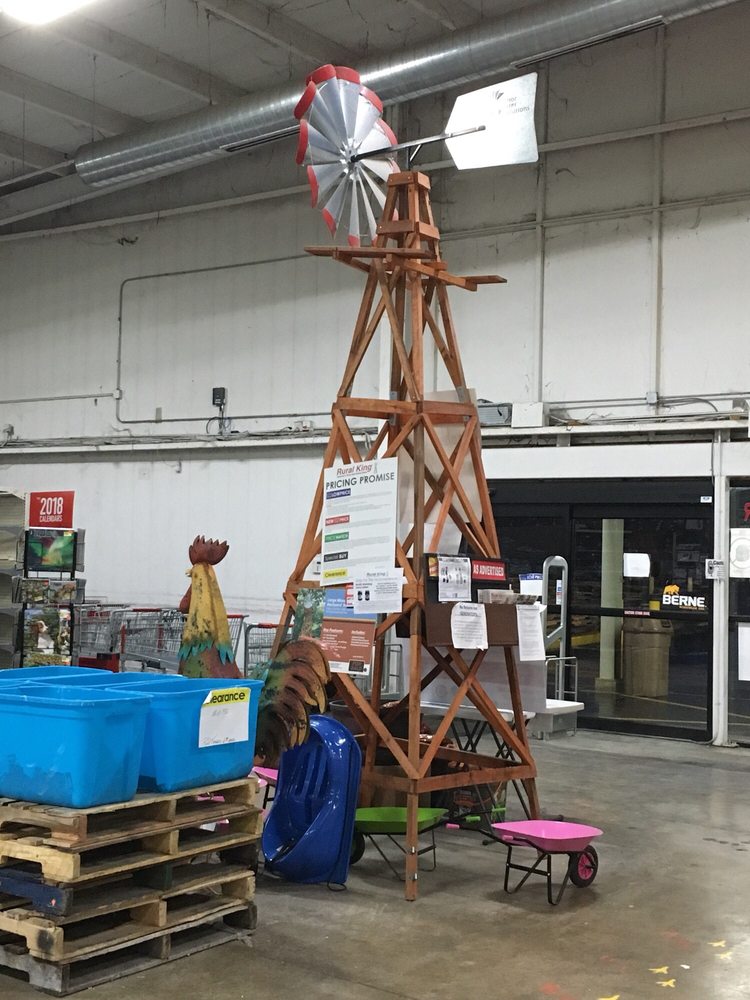 Rural King is a farm and rural supply store with an outstanding product mix. It carries everything from livestock feed, farm equipment, and agricultural parts to lawn mowers, workwear, fashion clothing, housewares, and toys. The store is known for having all of your rural and farming needs, stocked with tons of different stuff. Customers can find hunting supplies, functional clothes and shoes, automatic solar lights, pet food, and live animals like baby bunnies and chicks. The locations also offer plants and farm supplies. The store provides Every Day Low Prices and prides itself on excellent customer service. Employees are described as very friendly, knowledgeable, and helpful, greeting customers and assisting them until they find what they need. The shopping experience is considered an adventure because you never know what you will find. It is also a dog-friendly store that offers complimentary popcorn for shoppers and a complimentary pig ear for dogs. Families appreciate these touches, and the store is noted for having a wonderful team of workers.