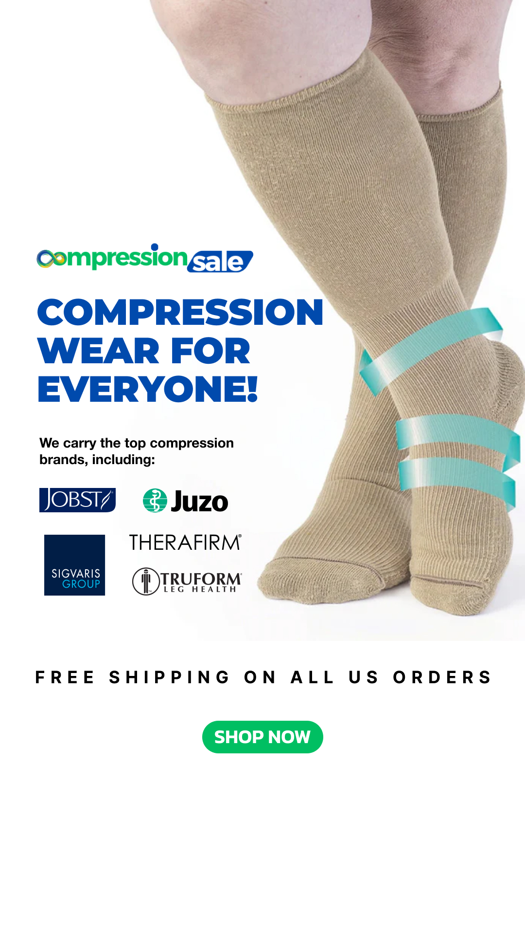 For 30+ years, CompressionSale excels in foot and leg health with premier compression stockings. Carefully chosen from top manufacturers, our products promise comfort, circulation, and podiatric well-being. Beyond acclaimed circulation socks, explore our supports and braces for ankles, knees, elbows, wrists, back, shoulders, abdomen, and neck. Find assistance on our website with sizing charts, washing instructions, therapy guides, and more. We've transformed foot and leg health, expanding with brands like Jobst, Sigvaris, and Therafirm. Get expert assistance via live chat, email, or phone for your perfect compression support stockings. Join us in advancing health worldwide.