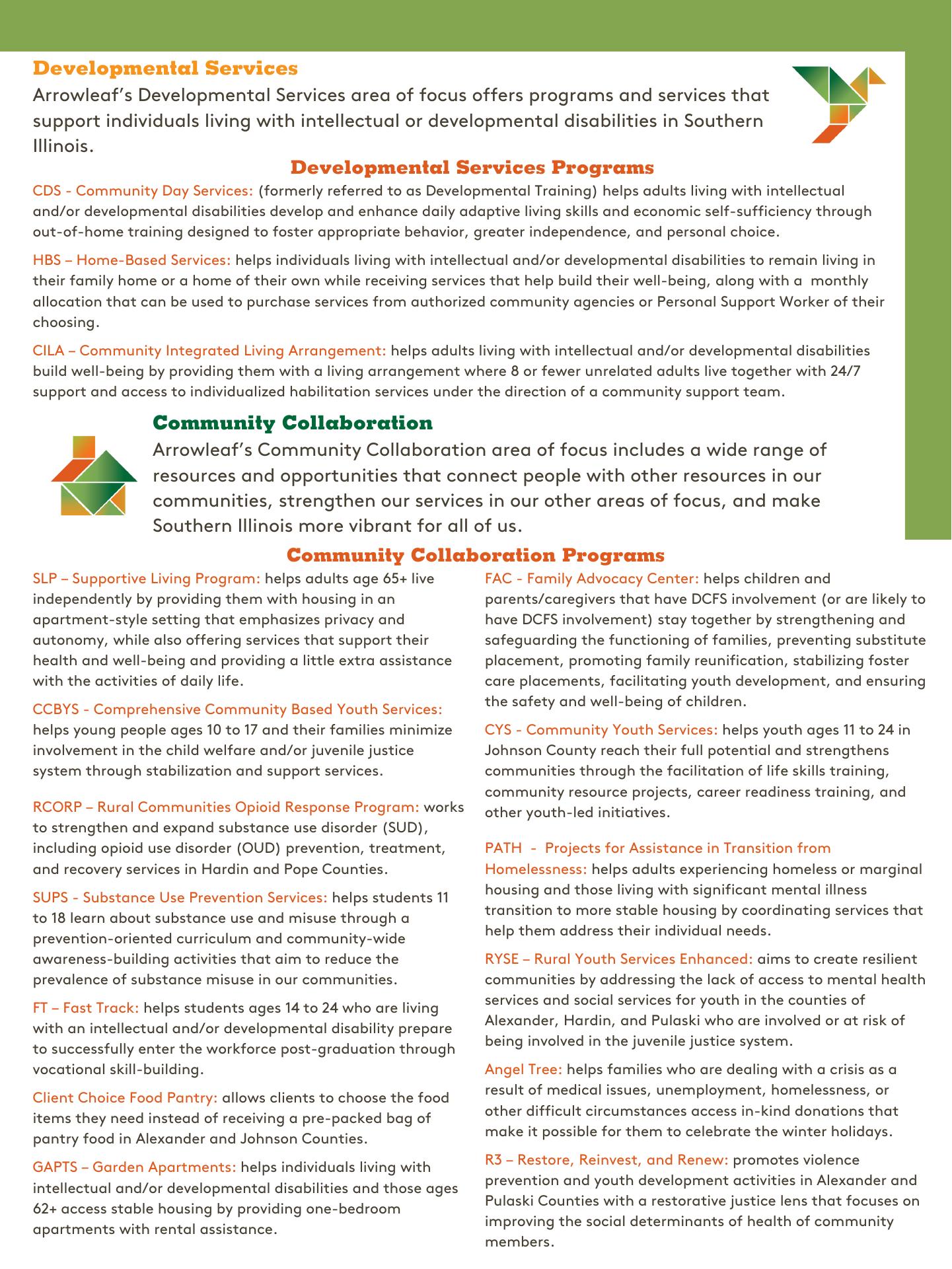 Arrowleaf provides resources and opportunities that build well-being for Southern Illinoisans throughout their lives so they can reach their potential and help our communities thrive. Our work is focused on helping you reach your potential and contribute to your community. We offer more than 25 programs in the following areas: Behavioral Health, Developmental Services, and Community Collaboration.