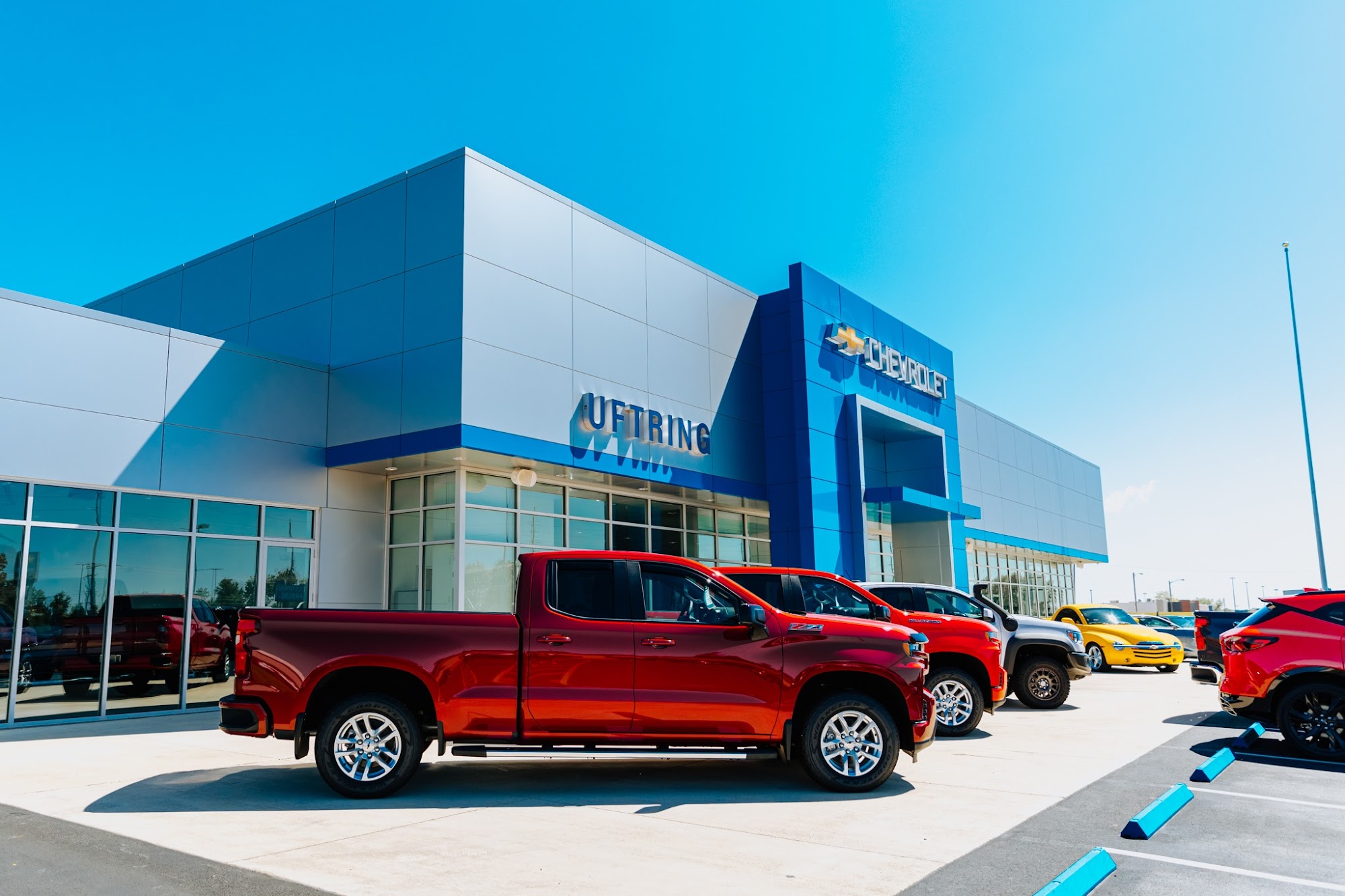 Uftring Chevrolet is a full-service Chevrolet dealership founded in 1982 in Washington, Illinois. They specialize in new Chevrolet sales, Chevy Commercial and Fleet truck sales, Corvettes, and high-quality pre-owned vehicles. Uftring Chevrolet is also a GM Certified Service dealership, offering a Parts Department and Body Shop. Customers have praised the exceptional customer service at Uftring Chevrolet. Clay, Andrew VanMeter, and Nick G. were highlighted for their friendly, helpful, and efficient service, making the car-buying process a positive experience. Customers appreciated the lack of pressure and the ability to find the exact vehicle they wanted at competitive prices. The service department also received positive reviews for their professionalism and quality workmanship, particularly in the installation of a roof rack on a Chevy Blazer. Overall, Uftring Chevrolet is a well-regarded dealership known for its wide selection of Chevrolet vehicles, knowledgeable and accommodating staff, and commitment to providing an excellent customer experience.