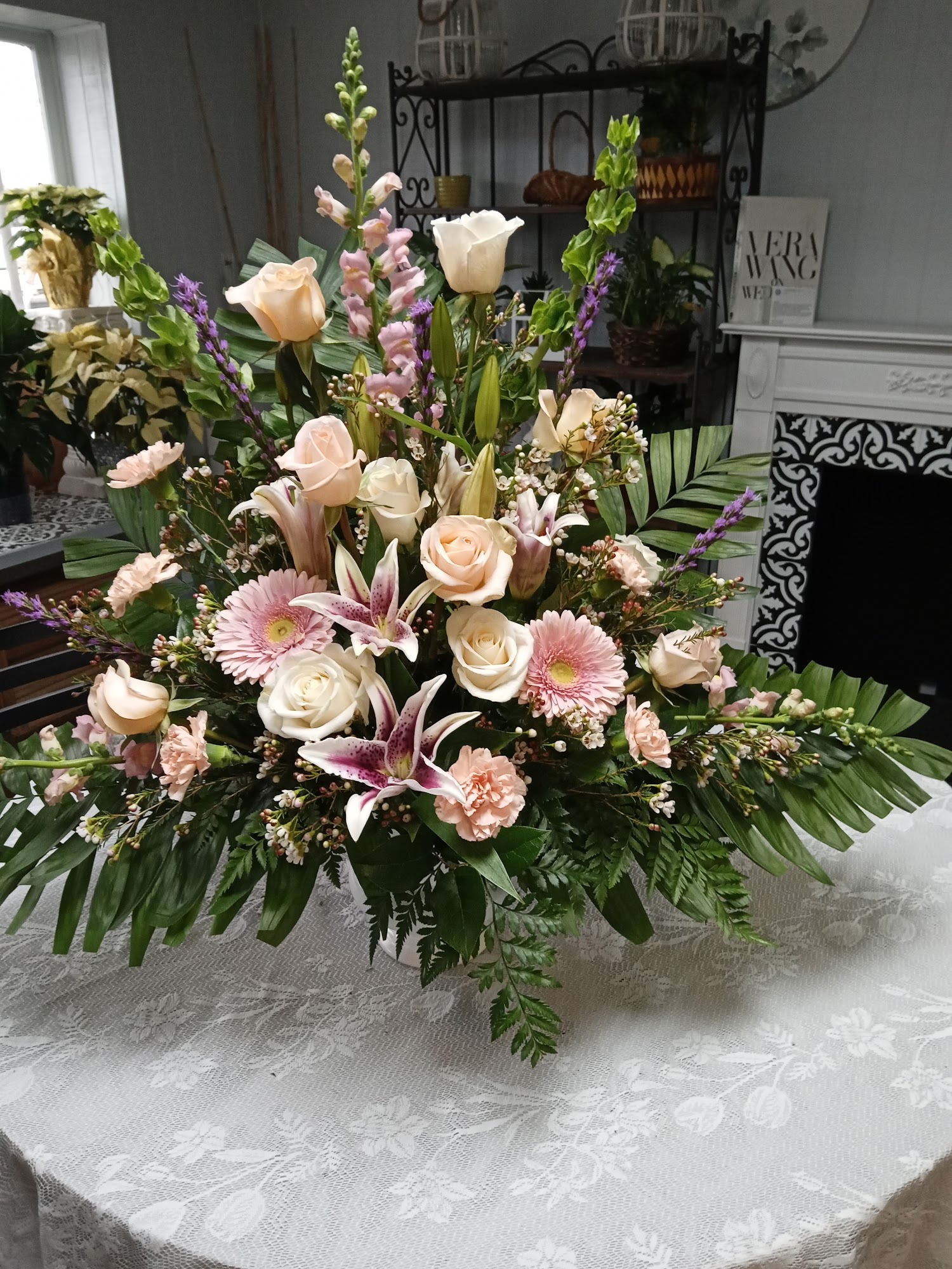 I spoke to Sherry the owner, she made some great suggestions for flowers. It was my Aunt's 90th birthday surprise party. The arrangement was a basket with colorful spring flowers. Beautifully done, and delivered on time. I will definitely call her for all my future florist needs.