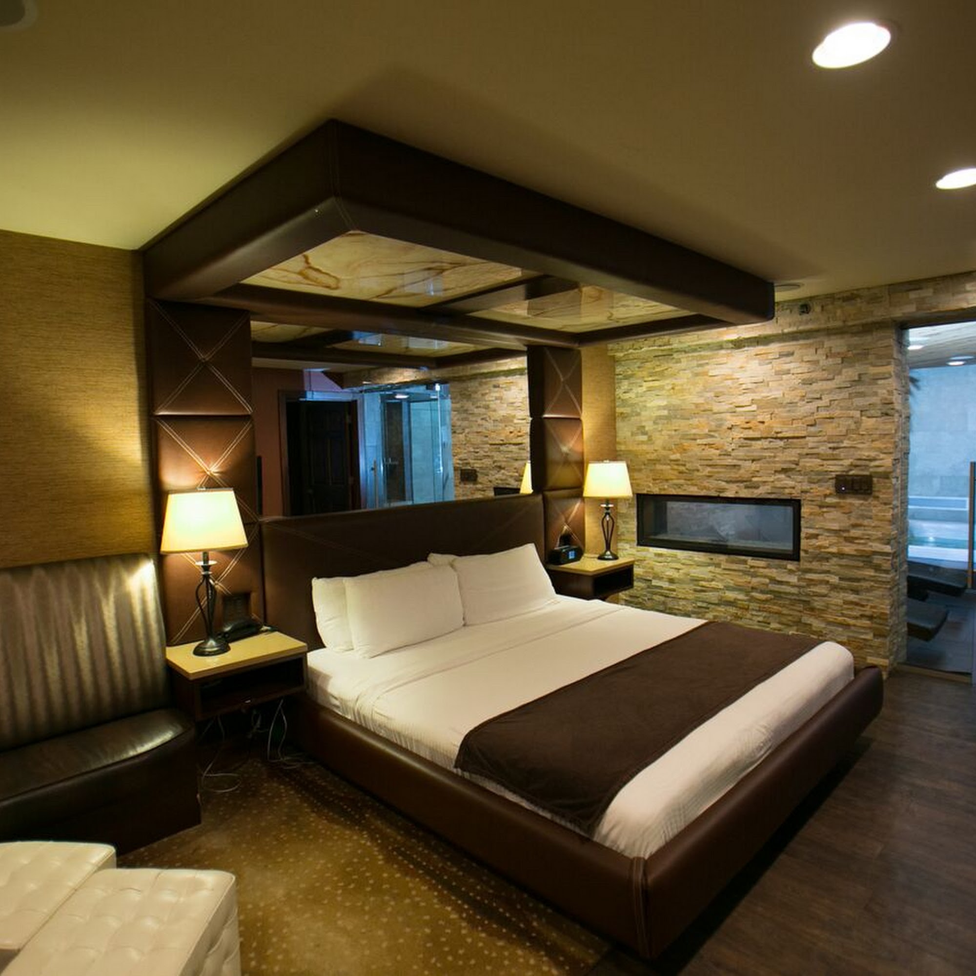 The Champagne Lodge & Luxury Suites is a quaint and secluded hotel, perfect for a quiet getaway. It is described as a great low-key spot, ideal for couples or a weekend escape. The rooms are super clean and include luxury features such as big stand-in showers, in-room jacuzzis, and even some with an in-room pool. Beds are consistently noted as very comfortable, providing a great sleep. The staff is wonderful, polite, welcoming, and provides great service, often accommodating guest needs. While there is not much walk-around space in some rooms, the atmosphere is quiet and unbothered, allowing for leisurely walks. The location is right down the road from local dining options and suitable for business travelers, though it is a little further from major tourist destinations. Overall, it is an incredible getaway option with a great price and great service.
