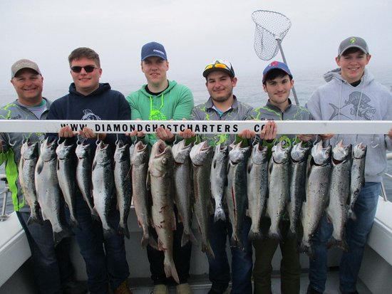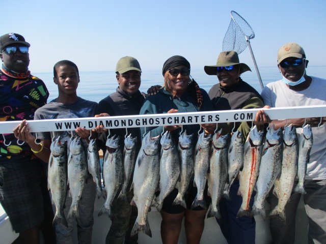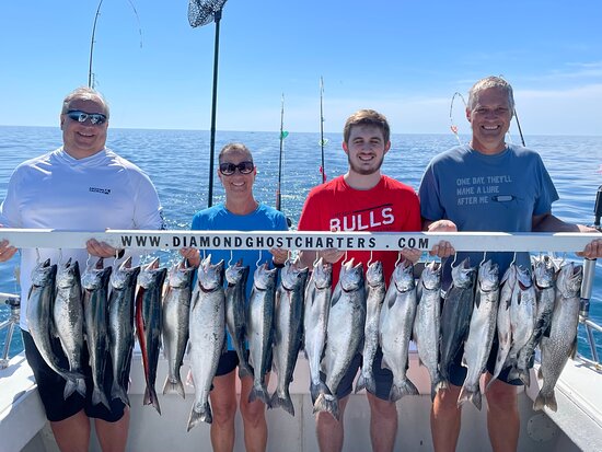 Diamond Ghost Charters, led by Captain Tony, provides an excellent fishing experience. The captain is fantastic, knowledgeable, friendly, and patient, working hard to put guests on the fish. He ensures a great time with lots of laughs and coaches people through any situation on the lake. Safety is a clear priority. Customers report catching lots of fish, including big fish, Lakers, Coho, Lake Trout, and rainbow trout, often limiting out. The trips create memories for a lifetime, whether with family, friends, experienced fishermen, or rookies. Expectations are consistently exceeded, and the charter comes highly recommended for anyone looking to have an amazing experience.