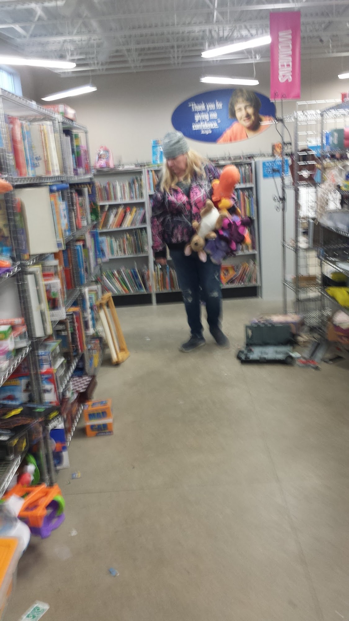 Large donation center, well organized. Plenty of parking, Handicapped accessible entry. Most items reasonably priced, but a few were overpriced. Large assortment of goods for perusal and purchase. Enough cashiers ready at checkout. Restrooms clean and available for patrons. I would shop here again.