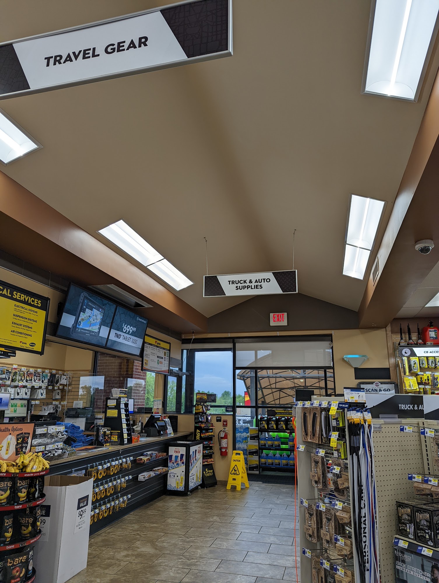 Love's Travel Stop is conveniently located on I-69. It offers friendly service, a modern store, and clean facilities with diesel fuel, gas, food, and supplies. There is lots of place to park, even for big trailers, and the store has lots of cool items. The fast food restaurant was fair. Staff are helpful and courteous, with great attitudes. However, there have been reports of roaches in the eating area. The location and service are great for keeping drivers going.