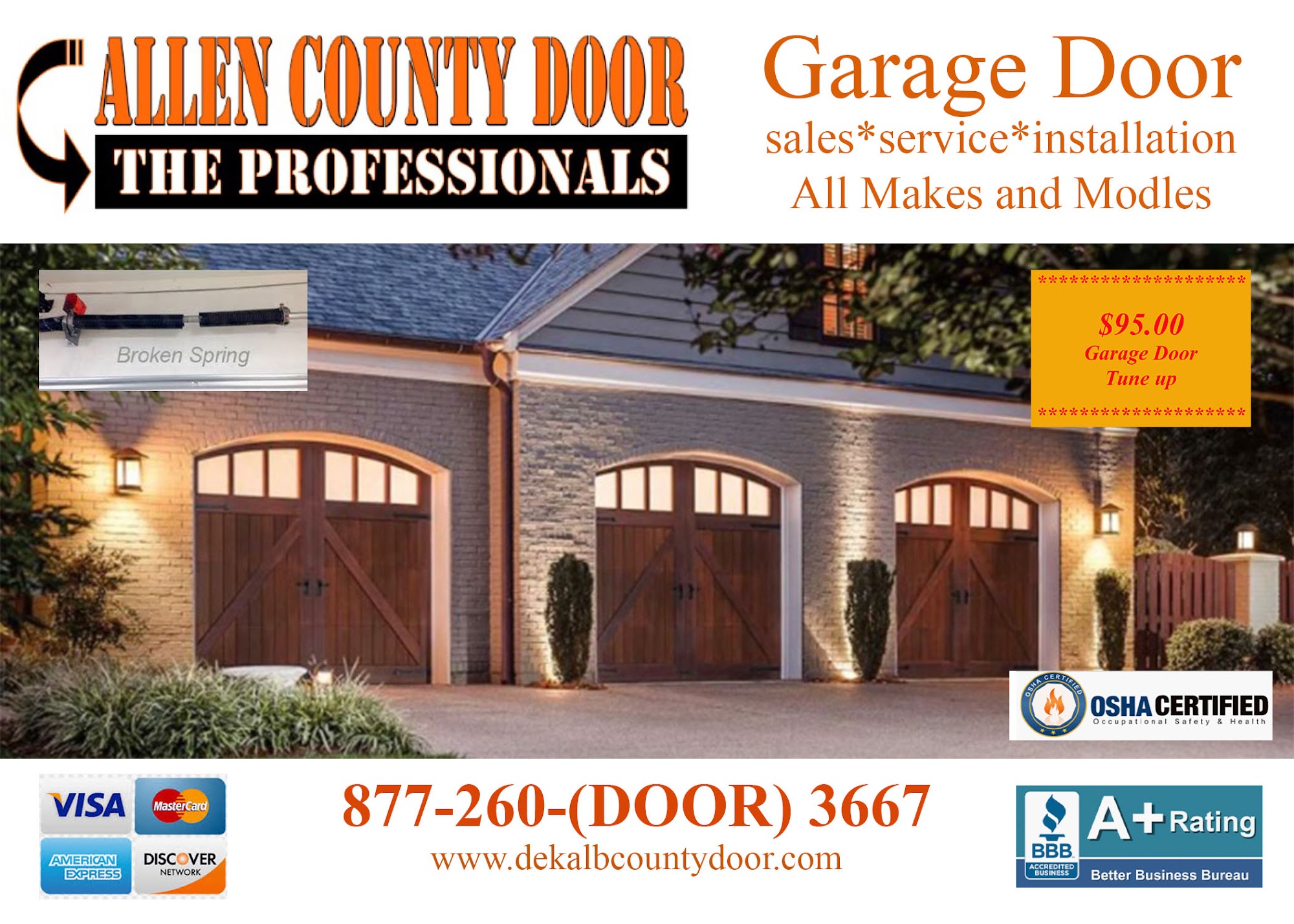 Woke up with it being four below zero outside and a broken torsion spring. Brian the owner went out of his way to bring me two new springs and then to top it off went back to his shop to so he could loan me two bars to wind the springs.This was a day before Christmas Eve and the service was exceptional and unexpected!
