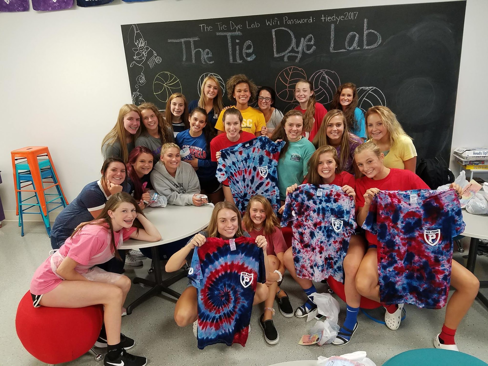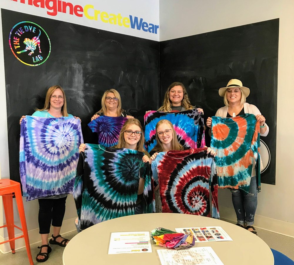 The Tie Dye Lab is a hands-on, do it yourself, walk-in Tie-Dye Studio! We offer an organized, fun and colorful space for you to create one of a kind wearable items. Perfect for family activities, preschool play dates, senior outings, team bonding, birthday parties, girl’s night out, etc. For small groups of 8 or under, there is no need to make a reservation. We’ll be ready to help you tie dye anytime! No matter what size or type of group you have, the Tie Dye Lab is for EVERYONE of ALL AGES