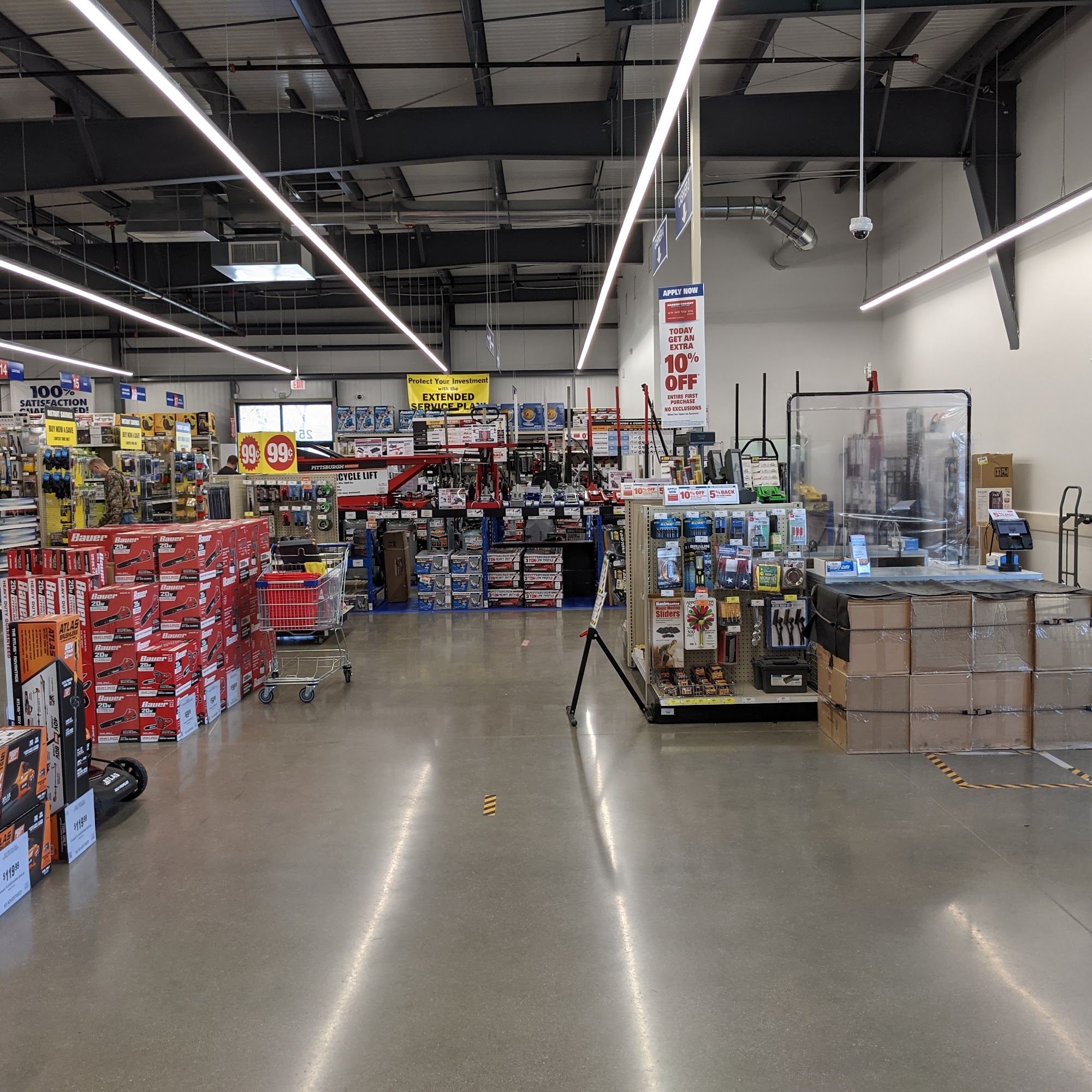 Harbor Freight Tools is a good place for a good price, offering fantastic products, tools, and maintenance materials. The pricing is fantastic, with membership perks and freebies with purchases. The sales clerks are courteous, very kind, and helpful, connecting to the customer on a personal level. The cashier is awesome. The store has a nice layout where things are easy to find, making it a favorite place to walk the aisles. It is highly recommended to buy a warranty when available, as they are great about honoring warranties. The only complaint is that it can be hard to get internet on a phone inside, but that does not keep customers from shopping there often.