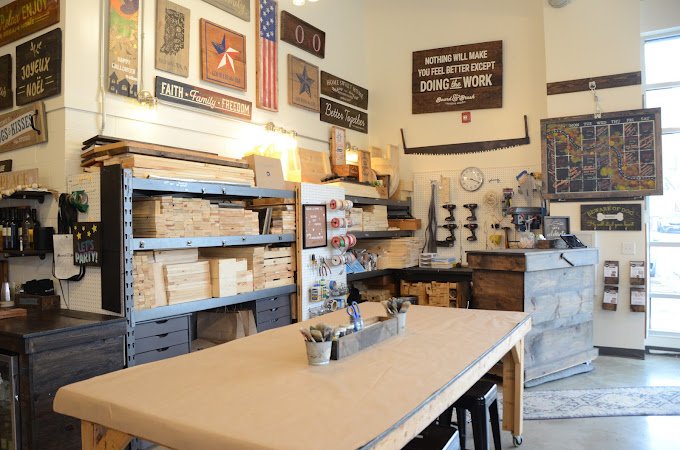 Welcome to Board & Brush Creative Studio! We are your place to build on-trend, farmhouse-classic, inspirational pieces of décor for your home, office or cottage. Our studios offer a vintage, timeless look with accents of black and weathered wood to help cultivate your inner DIY design skills.