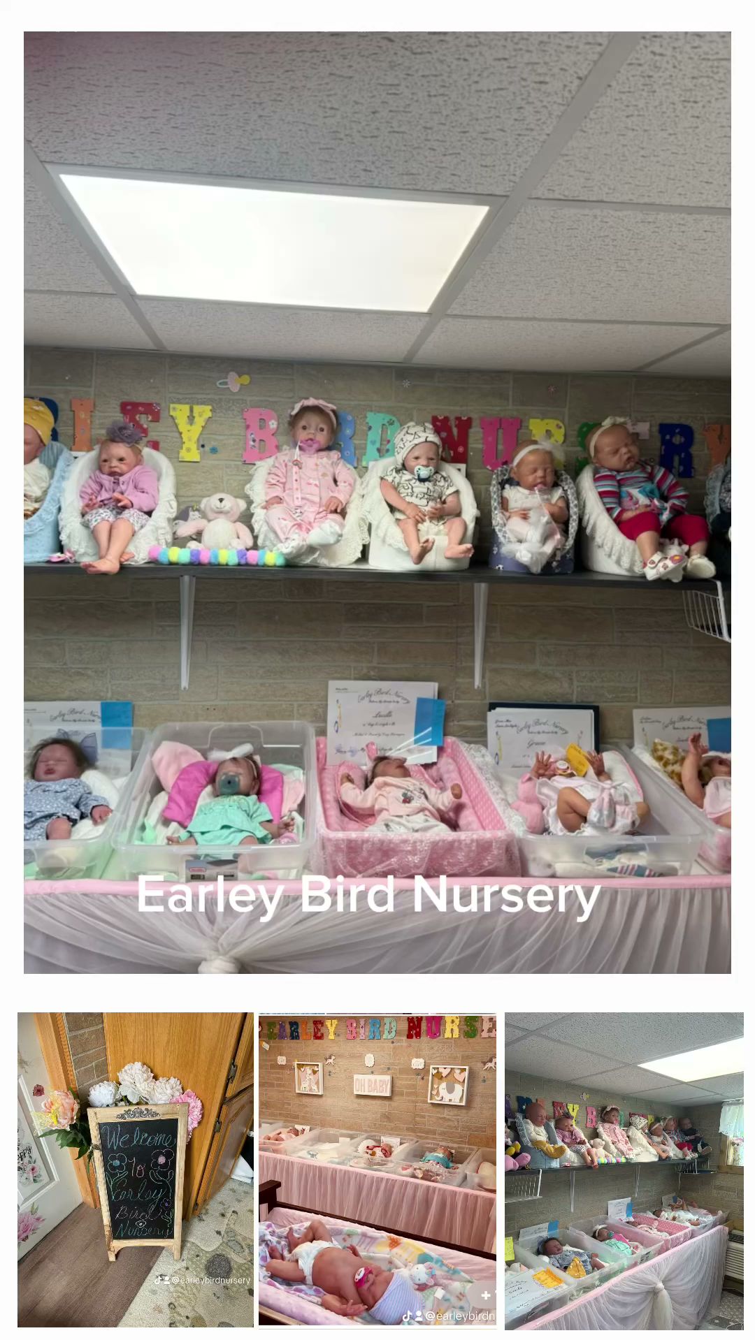 Updated 8/19/2024 PLEASE CALL BEFORE COMING . I have reborn doll Nursery. You can come to Nursery & pick out a baby (doll) In person. Pick them up & see how they look & feel in person.. I always have lots of babies ready to be adopted. Check out our brand new budget & kid friendly Silicone babies Under $350.00 😁. I’m always take custom orders. Call me or text me for appointment. Same day appointment available. Please message me or call before coming: I drive school bus 🚌 2-3 days a week. .
