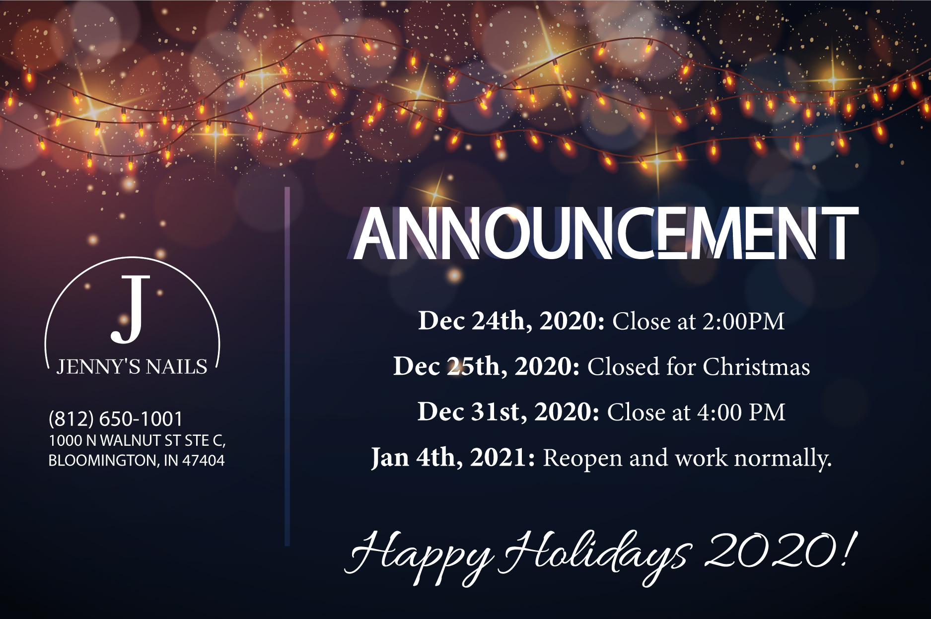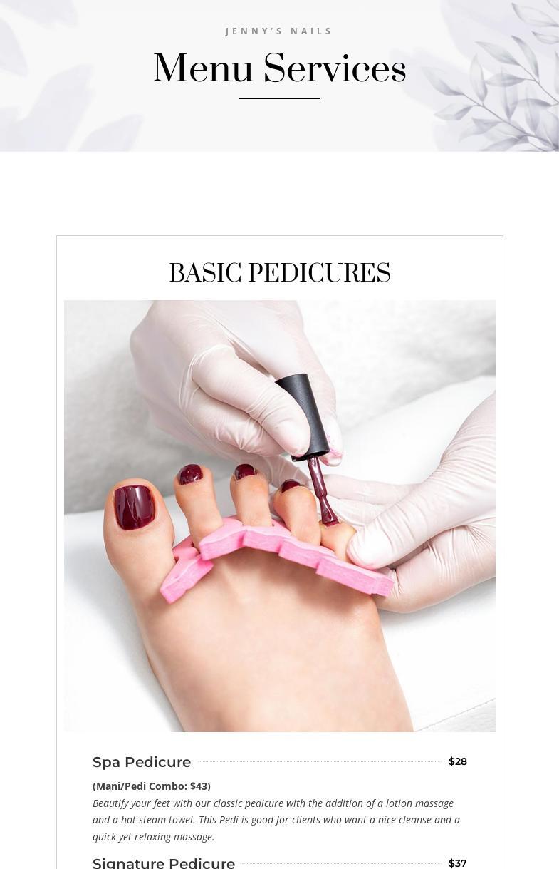 Service is excellent, clean and friendly with a peaceful atmosphere and great art work. . Always a joy to visit Jenny’s Nails. If you are having a hard day nothing like a visit to Jenny’s.