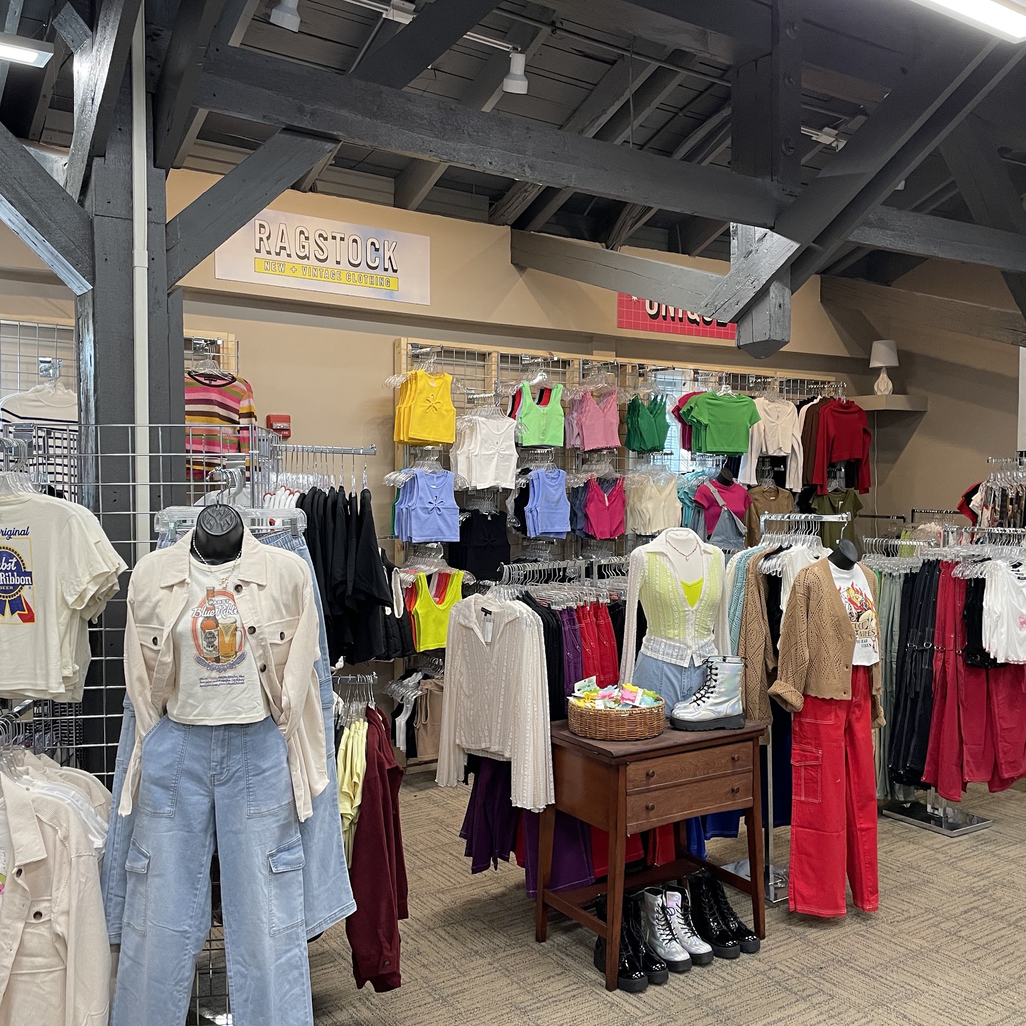 Ragstock is a large, two-story store that offers a wide variety of vintage clothing and some new items. The store features an impressive mix of authentic vintage pieces from multiple eras, including 80s windbreakers, 90s sweaters, flannels, denim jackets, and vintage T-shirts. The vintage clothing is well-organized, with a decent range of sizes from XS to XXL, making it accessible to many shoppers. Prices are generally reasonable, with many items around $20, and some racks upstairs offering items for just $5. The store also has brand new clothing, though less than half of the selection, including trendy micro items that may not be size-inclusive. Customers often find unique and interesting pieces, and the quality of the items exceeds expectations. The staff are friendly, helpful, and knowledgeable, creating a welcoming environment. While some items, especially newer trendy pieces, can be a bit pricey, overall Ragstock is appreciated for its fun atmosphere, diverse selection, and great finds for those interested in vintage and quirky fashion. It’s especially recommended for anyone looking for vintage styles, masculine attire, or odd and dark clothing.