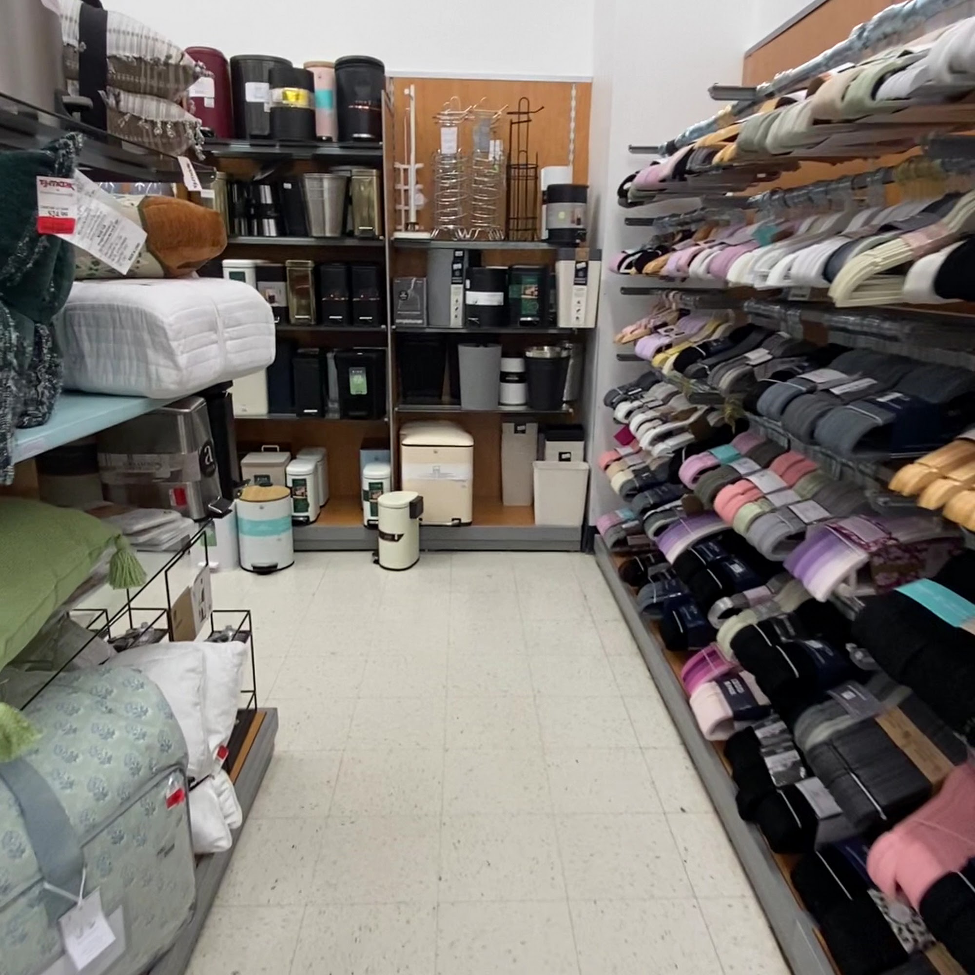 going to t.j.Maxx is like going to a middle eastern Bazaar. you might find a pack of socks with one missing, a night table made from the finest old growth Sequoia, some gently used knick knacks, Roman statue and some flavor syrups. It can be a little stressful the layout of the store that is, but... the bargains