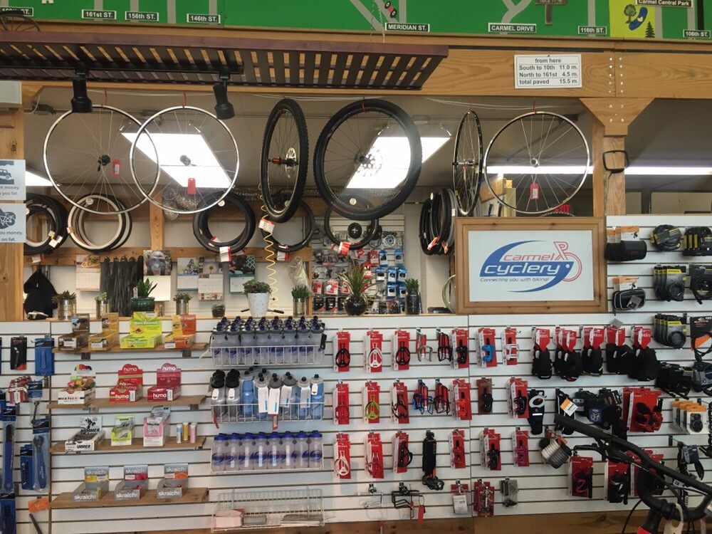 Carmel Cyclery is a very helpful and great bike shop with super nice people. They provide great service, are attentive and prompt, and are efficient and reasonably priced. The shop is known for fast repairs, coming through earlier than estimated, and quickly fixing issues. They help customers with tire changes, handle bar alignment, tune-ups, and installing items like pedals and saddlebags. The crew takes the time to get bikes up and running, checks them out honestly, and teaches customers about their bikes. They are walking distance for locals and helpful for visitors from out of town. Customers have had a great experience every time, call them the best, and will definitely be back.