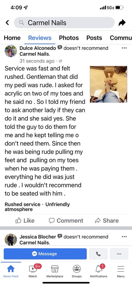 Cam did a Wonderful Job, I walked out feeling relaxed and Happy with my pedicure. I would recommend Cam if you go to Carmel Nails