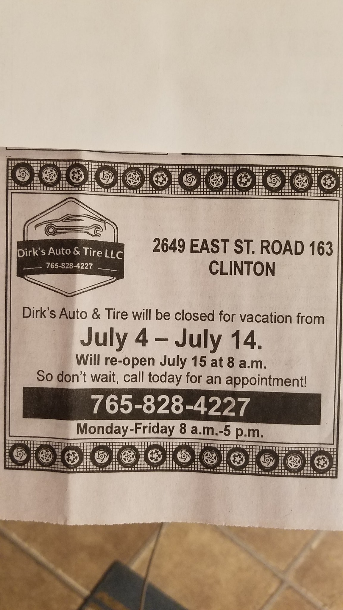 Dirk's Auto & Tire is an independent, family-owned auto repair shop serving Clinton Indiana, Rosedale Indiana, Rockville Indiana, and surrounding areas. We are a NAPA AutoCare Center with ASE-certified technicians on staff who undergo continuous training to stay up to date on the best repair practices for your vehicle. We're also on hand for preventive maintenance. When it's time for your next oil change or you need a problem diagnosed and repaired, give us a call or visit our auto repair shop!