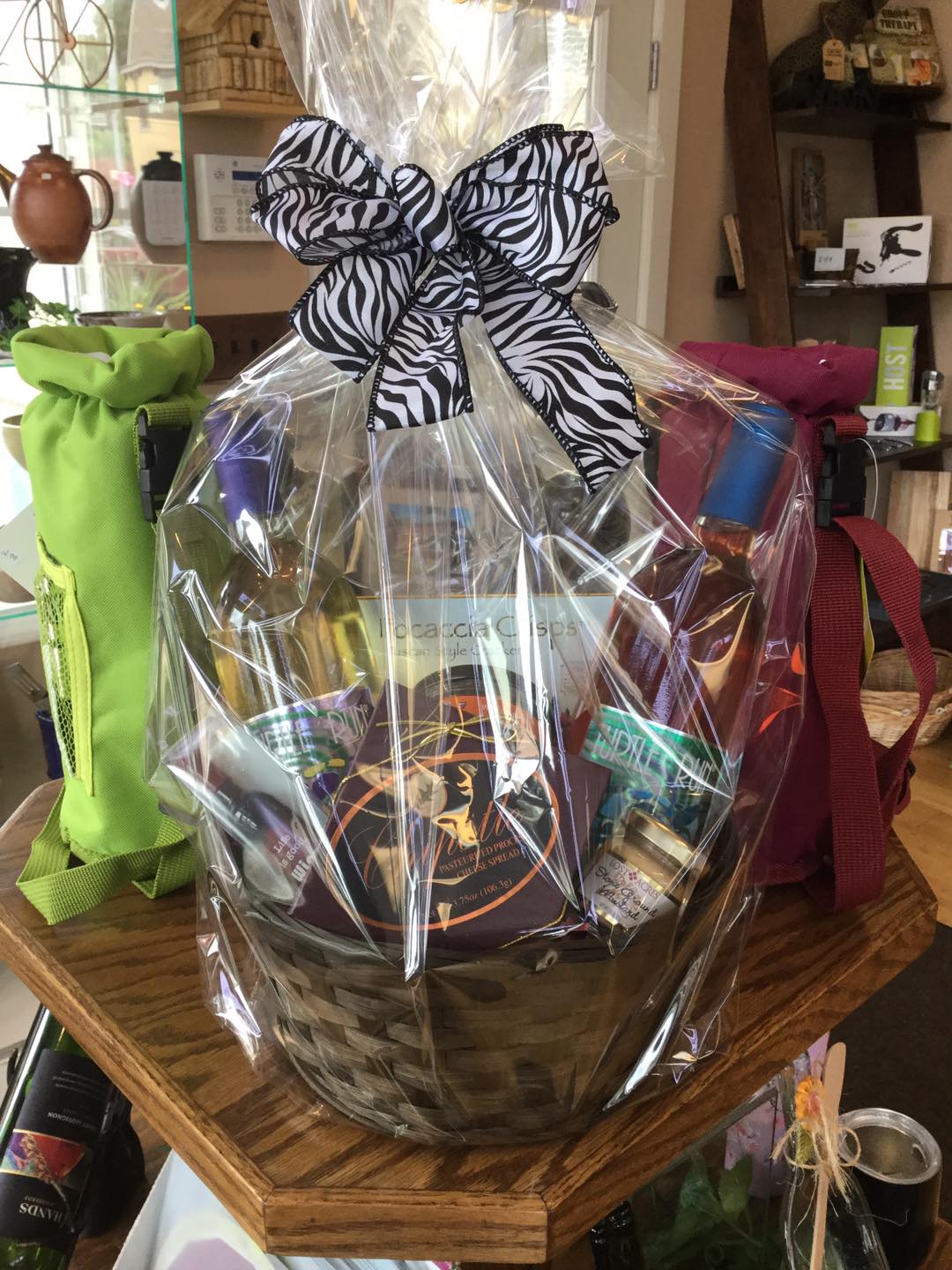 I love the olive oils, vinaigrettes, pastas, dish towels, soaps, snacks, chocolates, coffee, teas, etc. You name it! Don’t forget, it is a fabulous wine shop. You can make a gift basket, the possibilities are endless! I love it!!