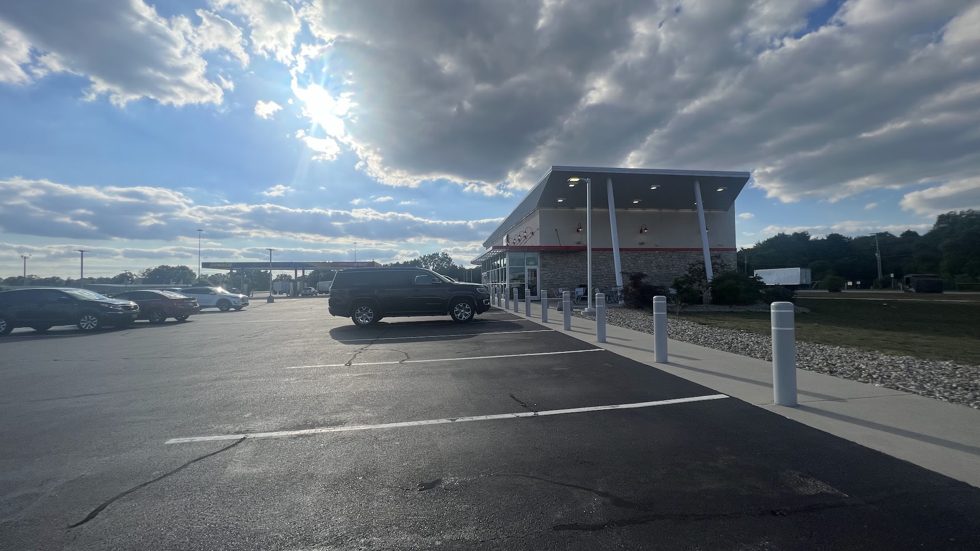 7-Eleven is a convenient gas station and store for travelers, offering a broad selection of drinks, fresh products, and fast, delicious hot foods. It features self-serve coffee stations and is a local hub for coffee. The store is typically well-organized, brightly lit, and properly staffed, with clean bathrooms. It provides outdoor seating, a deli, Tesla charging stations, and souvenir items. However, service can be inconsistent, with employees sometimes inattentive and tables needing cleaning. The store is a nice and conveniently located pit stop, although some equipment, like the latte machine, may occasionally be out of stock.