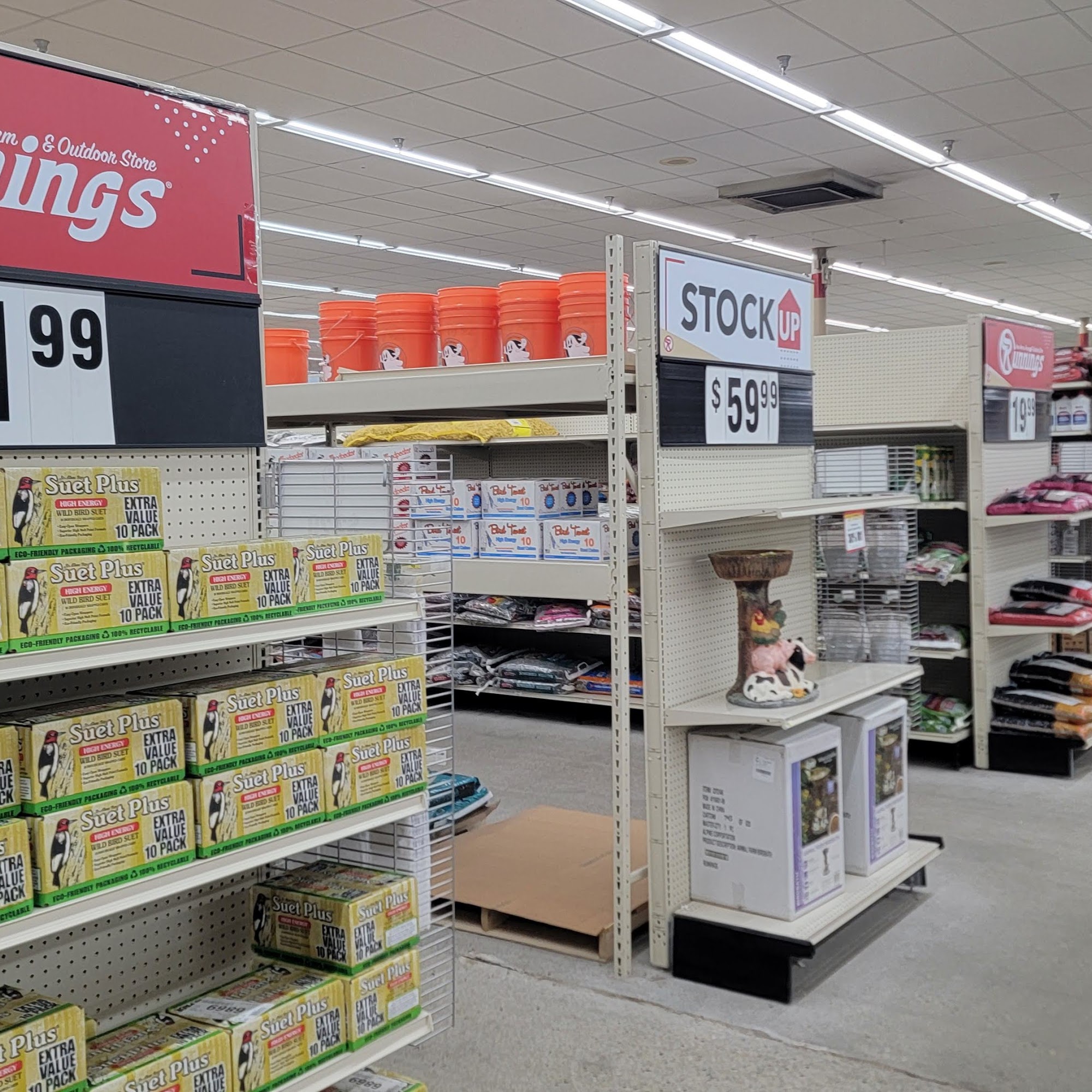 Runnings is a clean store with great selection of outdoor, pet, hunting, fishing and shooting gear, battery operated tools, heavy duty working clothes, weather gear and boots. The staff is helpful and the store have trapping gear the other two farm stores didn't have. They keep warm overalls for work. The place is like a harbor freight Bass pro shop. It is a great place to shop for all needs and many definitely going back.
