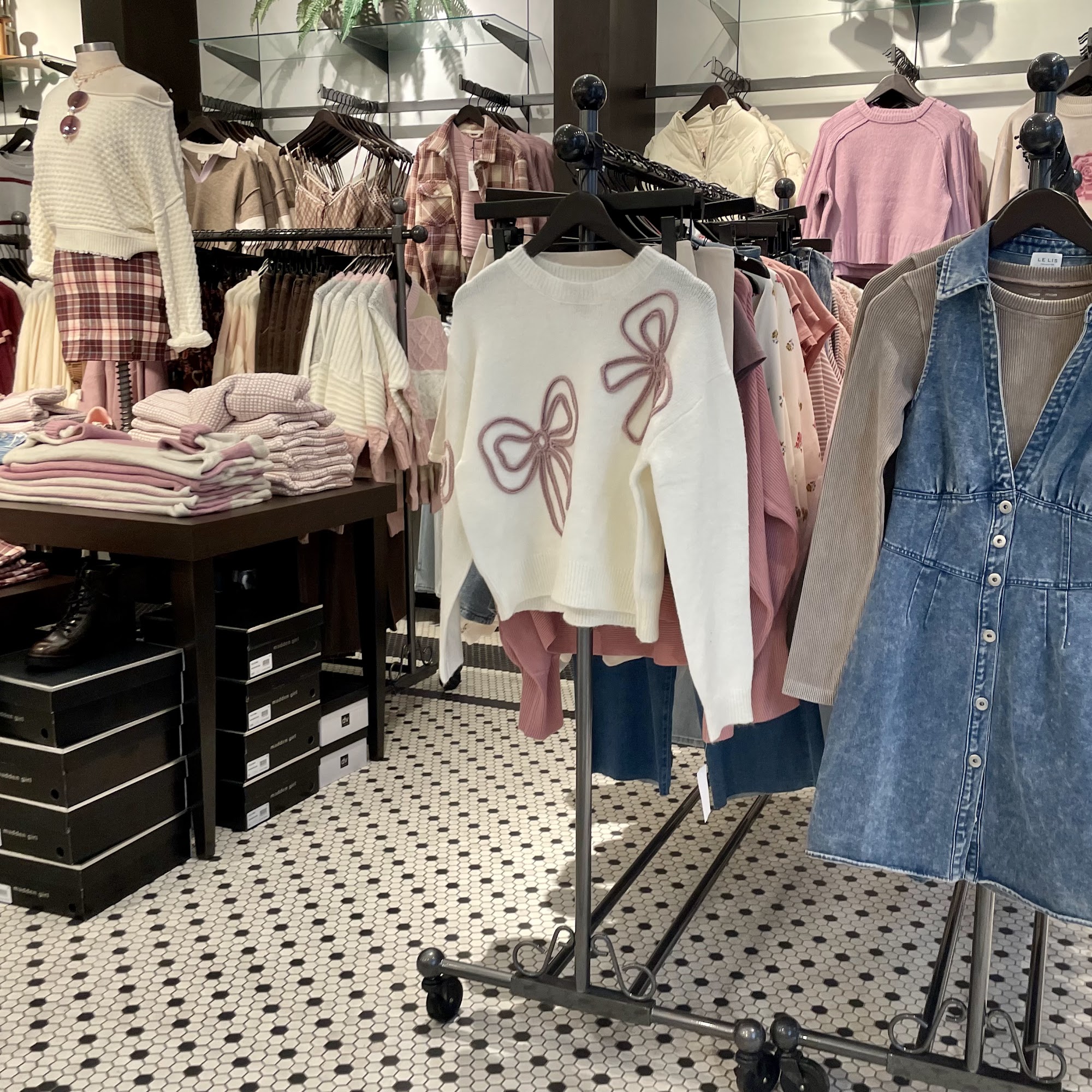 One of the most aesthetically pleasing shops in Eastland mall, cute storefront and appealing color palette. Clothing price appeared to reflect quality and fashion.