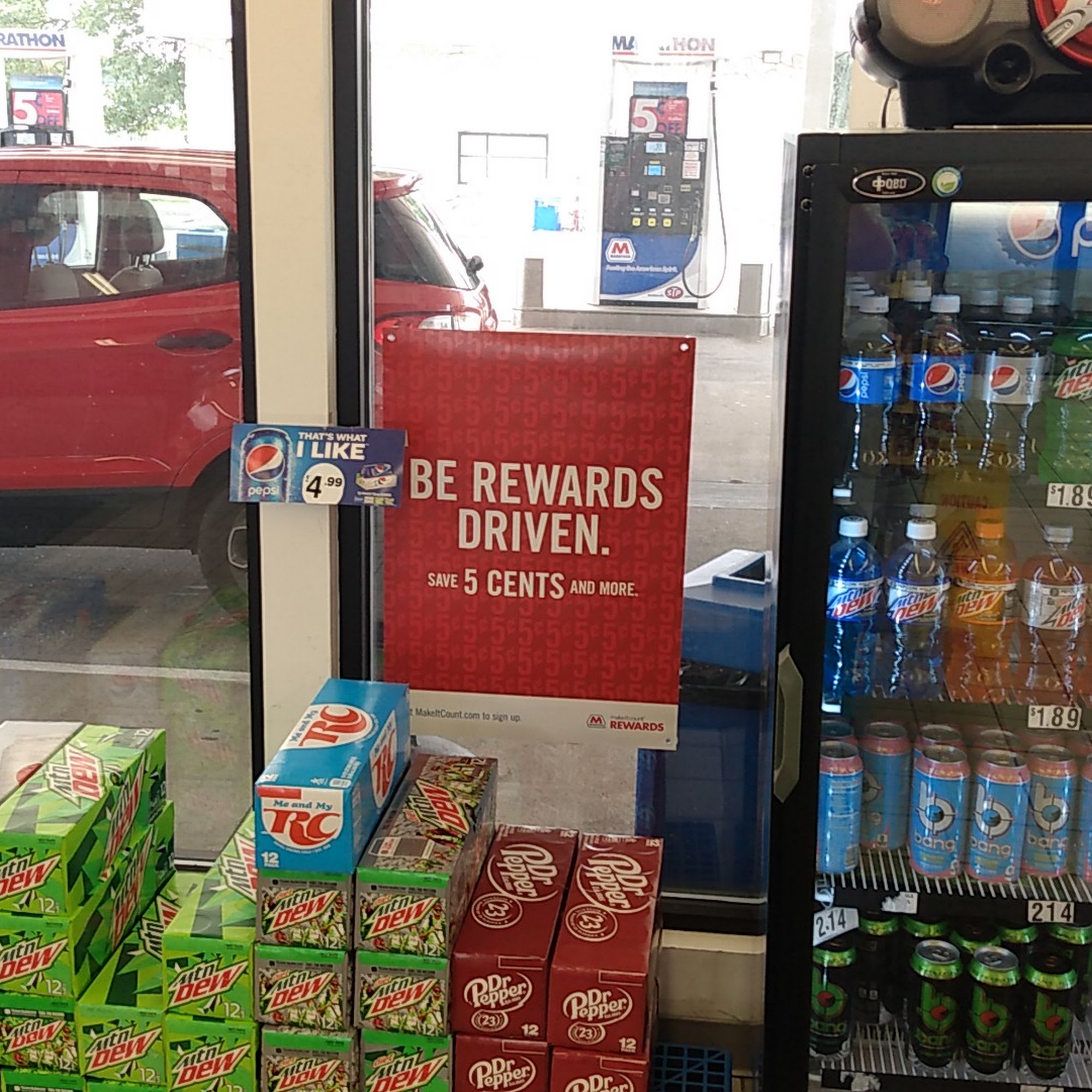 Good place to stop and get gas and a snack/drink. The gas prices were reasonable and the parking lot has plenty of room to maneuver the pumps. Store was clean and well stocked.