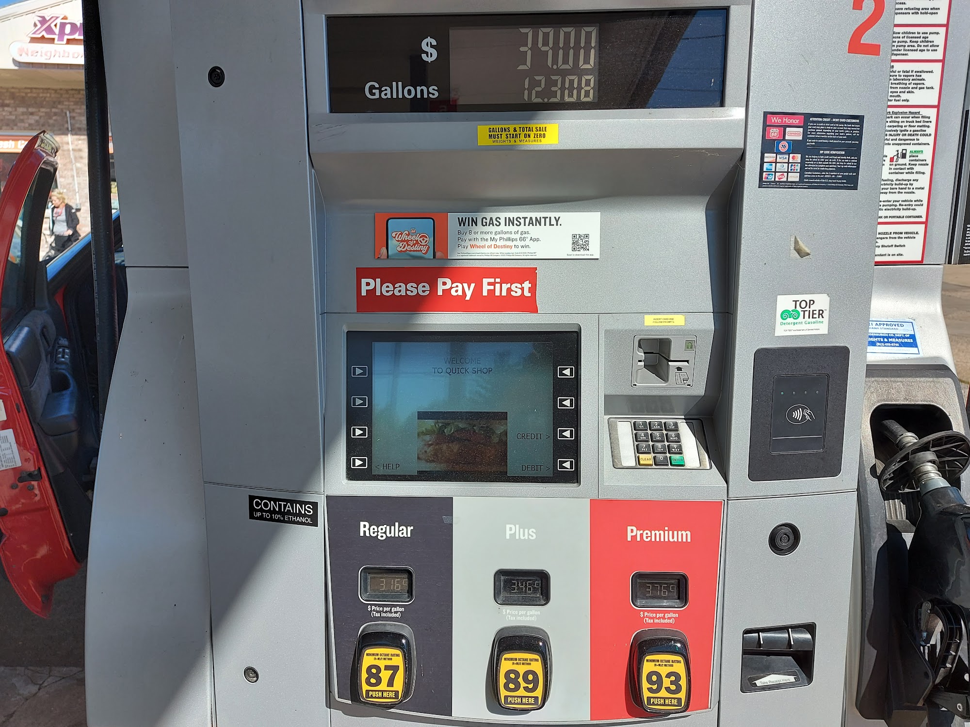Video ads. Also, I tried 3 different pumps and none of them took my card (that worked at the next station down the road)