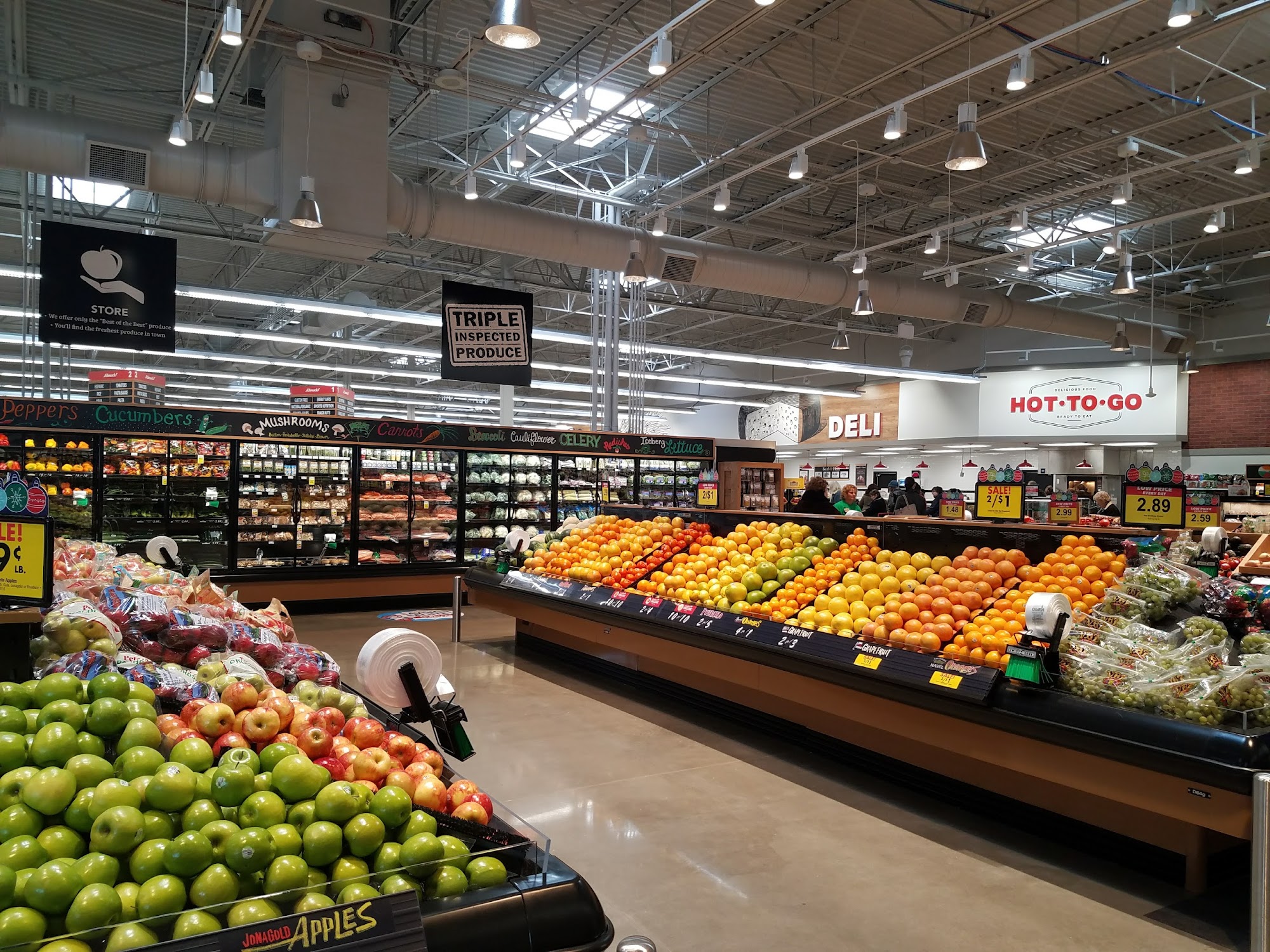 Clean and spacious with lots of options. They have a fresh salad bar. They even have wine and chardonnay in a cooler here, too.