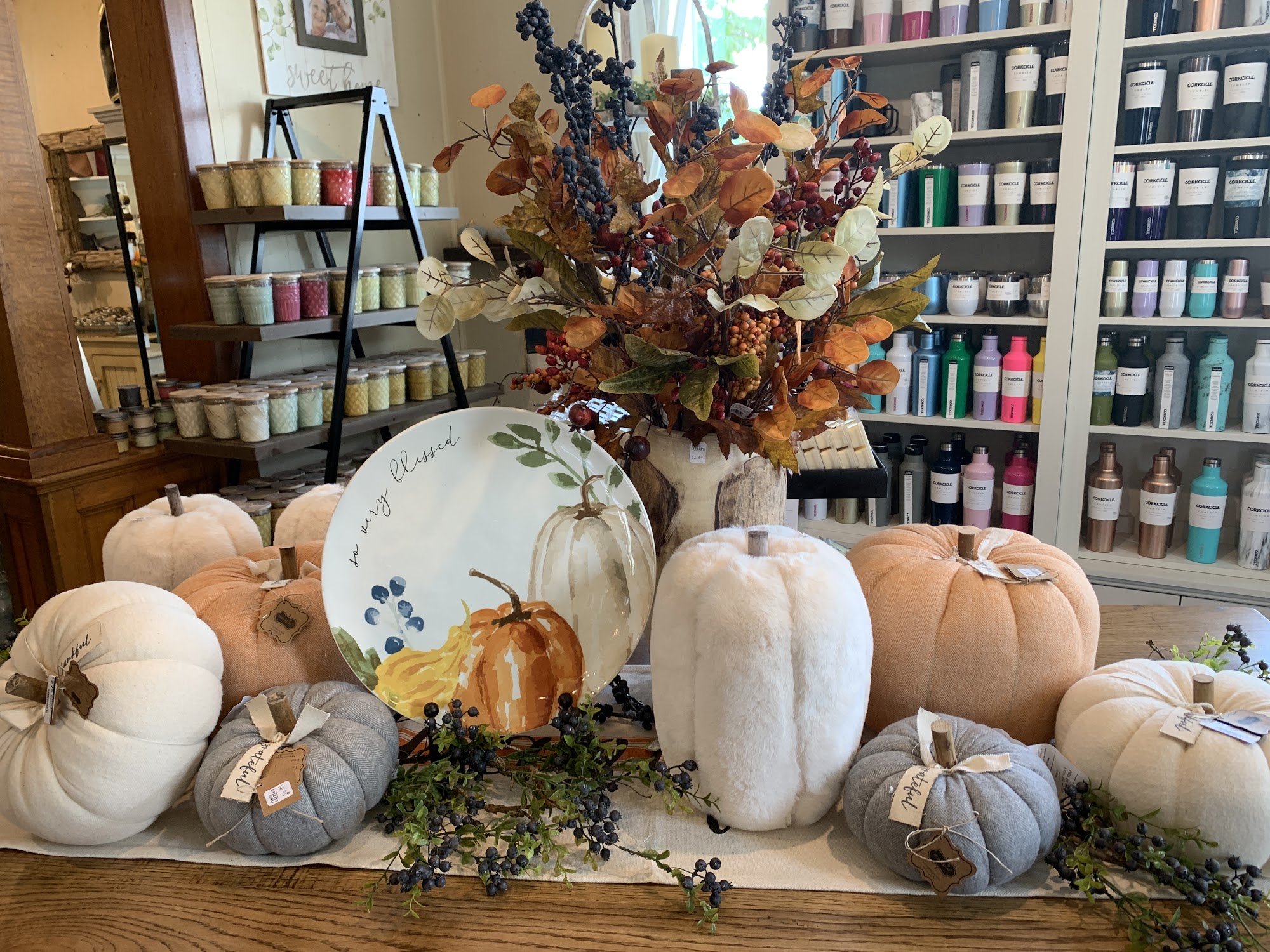 Fun shop, variety of home decor, jewelry, candles and florals. Nicely displayed great possibilities for accents in your home.
