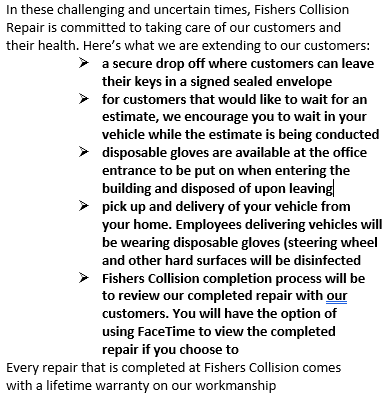 Very professional service and crew. I’m very happy that I chose Fishers Collision Repair to fix the damage to my 2025 Honda CRV. My car looks like new again!